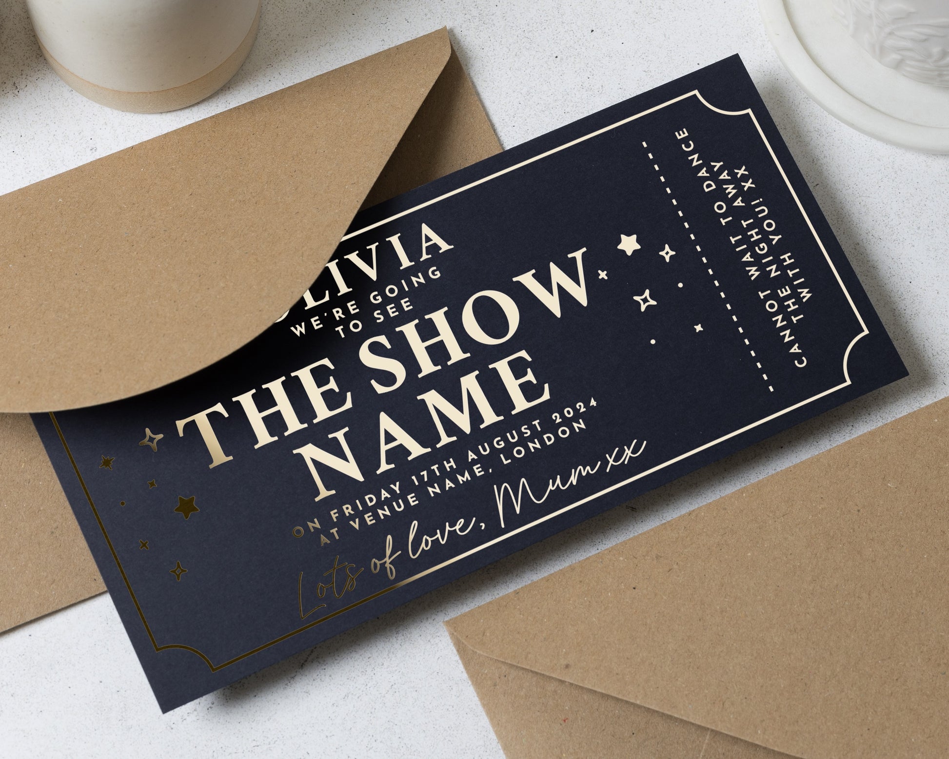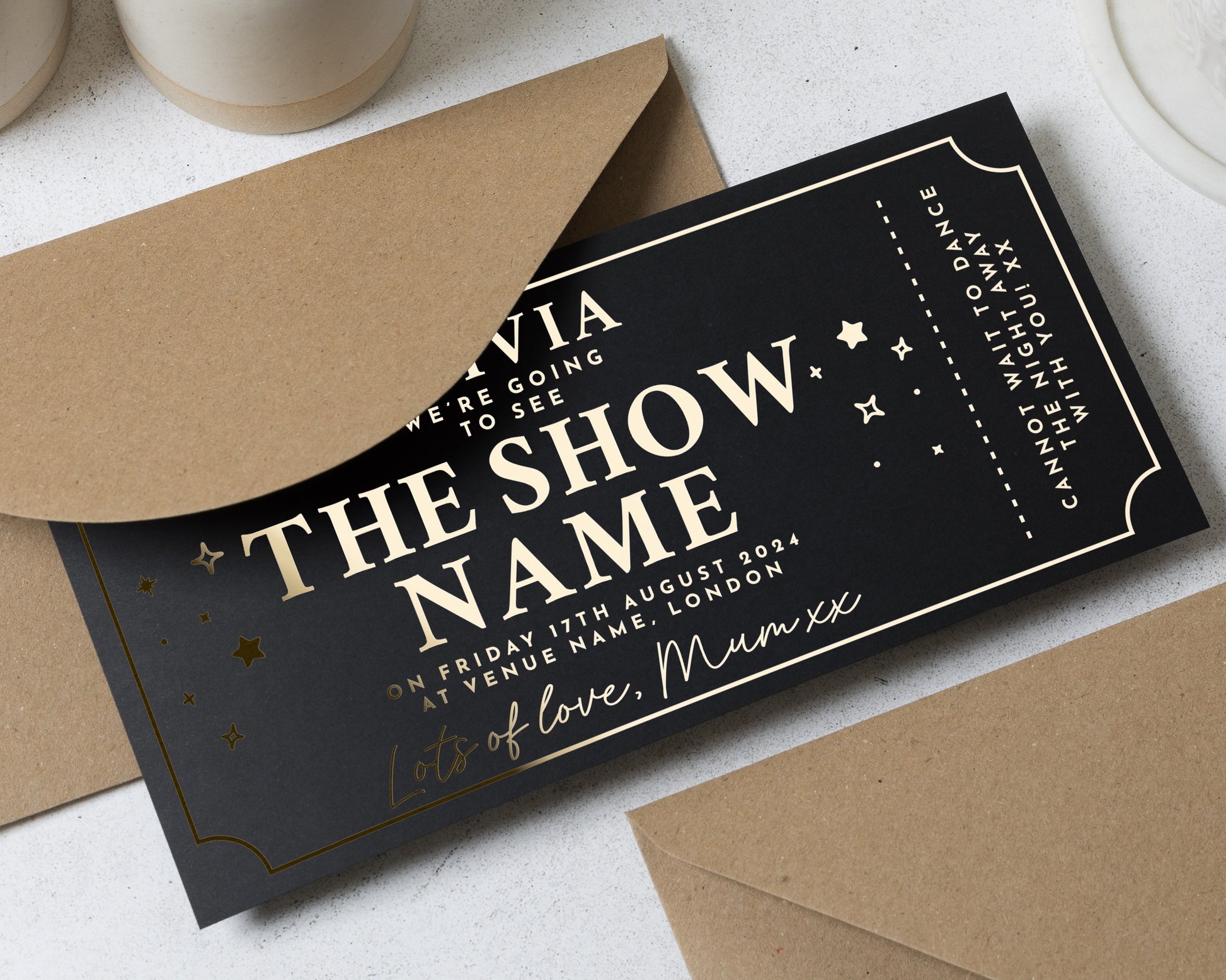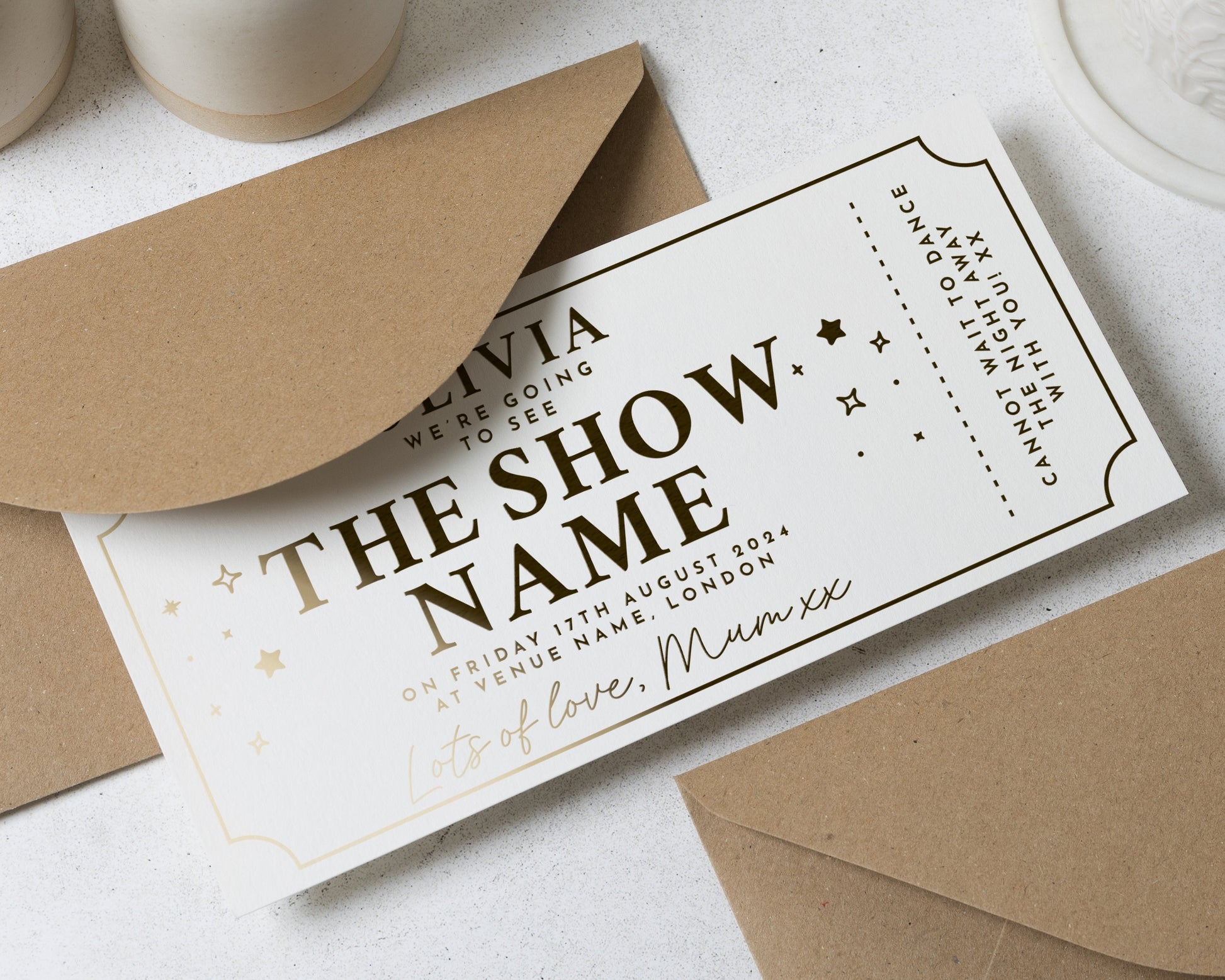 Personalised Concert Ticket Gift, Custom Show Reveal, Gold Foil Gift Voucher, Scratch To Reveal, Gift For Her, Birthday Gift