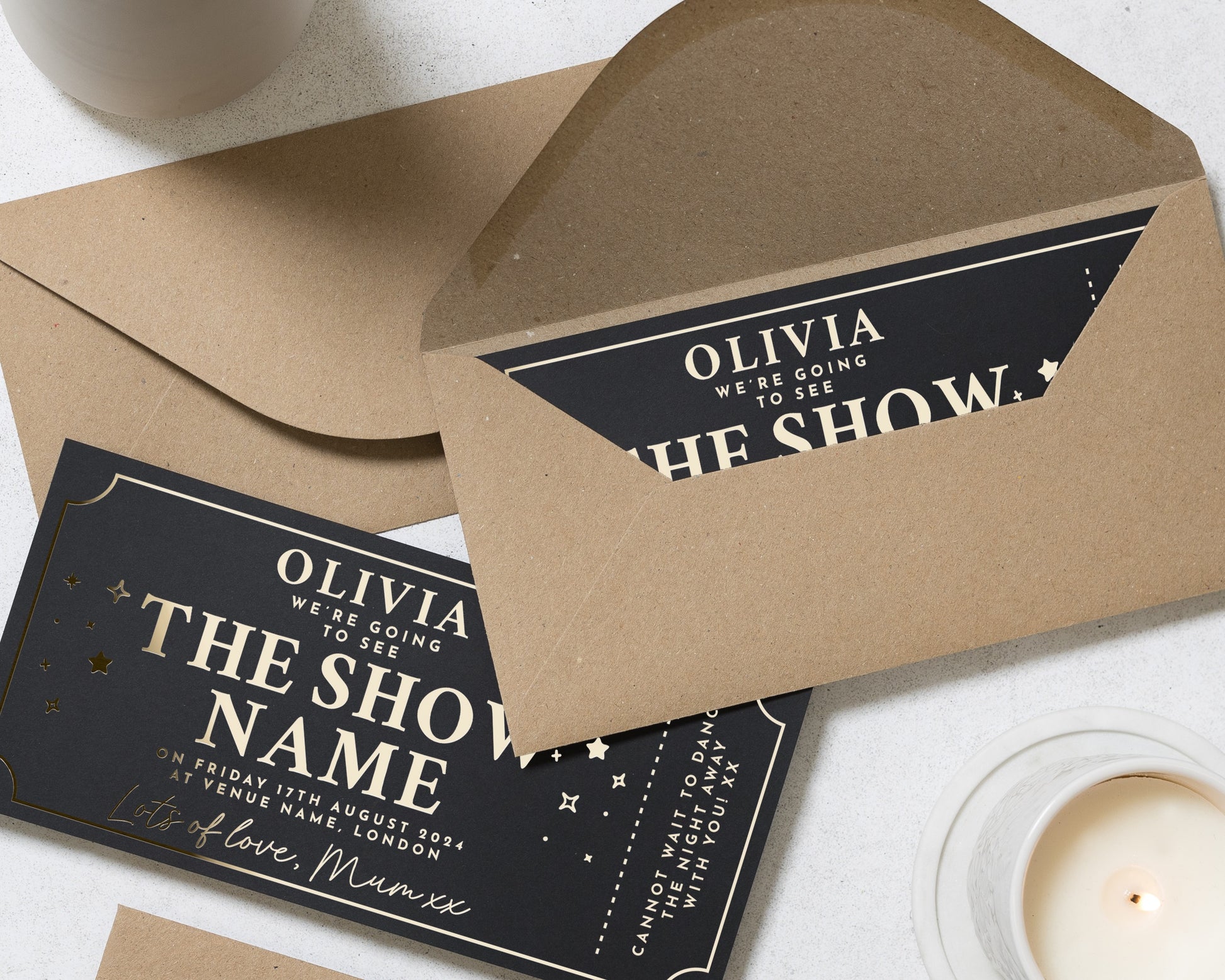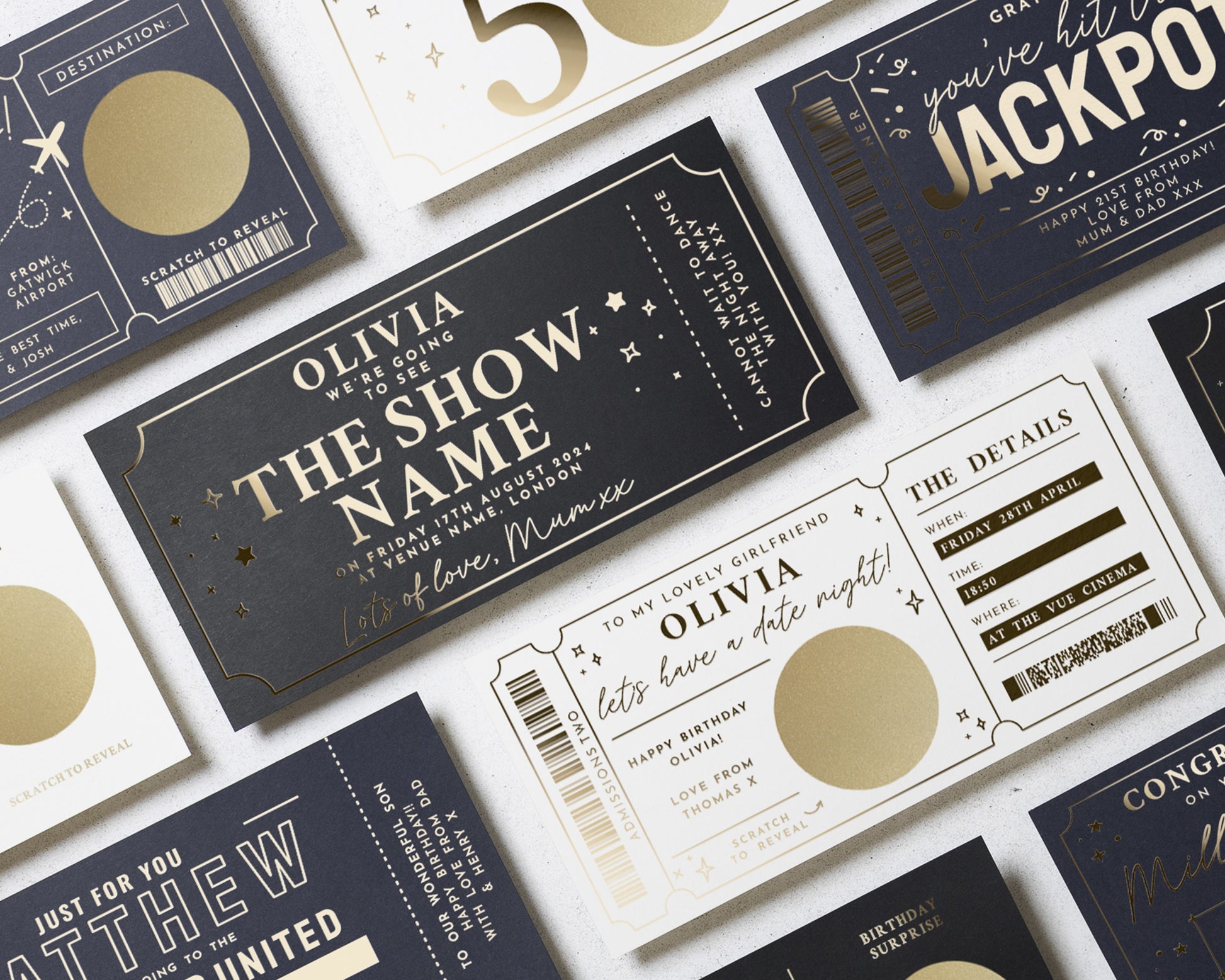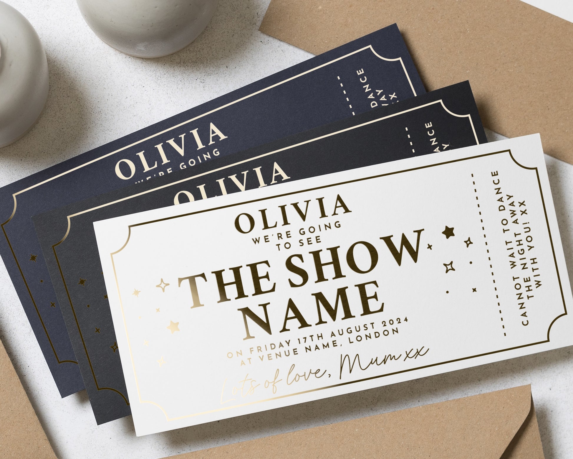 Personalised Concert Ticket Gift, Custom Show Reveal, Gold Foil Gift Voucher, Scratch To Reveal, Gift For Her, Birthday Gift