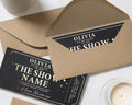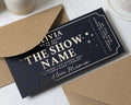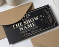 Surprise someone special with this personalised concert ticket gift voucher. Featuring gold foil on a black background, it's perfect for revealing a show or event in style.