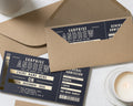 Surprise your loved one with this personalised gold foil concert ticket gift voucher. Featuring a sleek navy background and bold gold foil, this customisable card is perfect for birthdays or special events. Add your own event details for a unique gift.