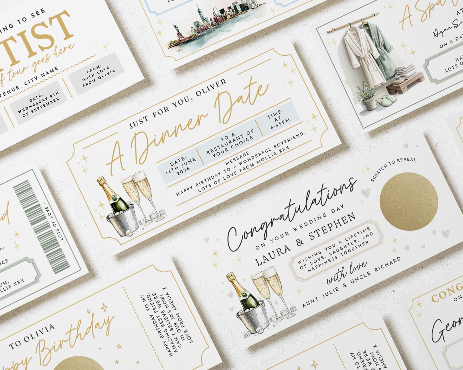 • Each voucher card measures 210x99mm, and is printed on heavyweight premium cardstock.