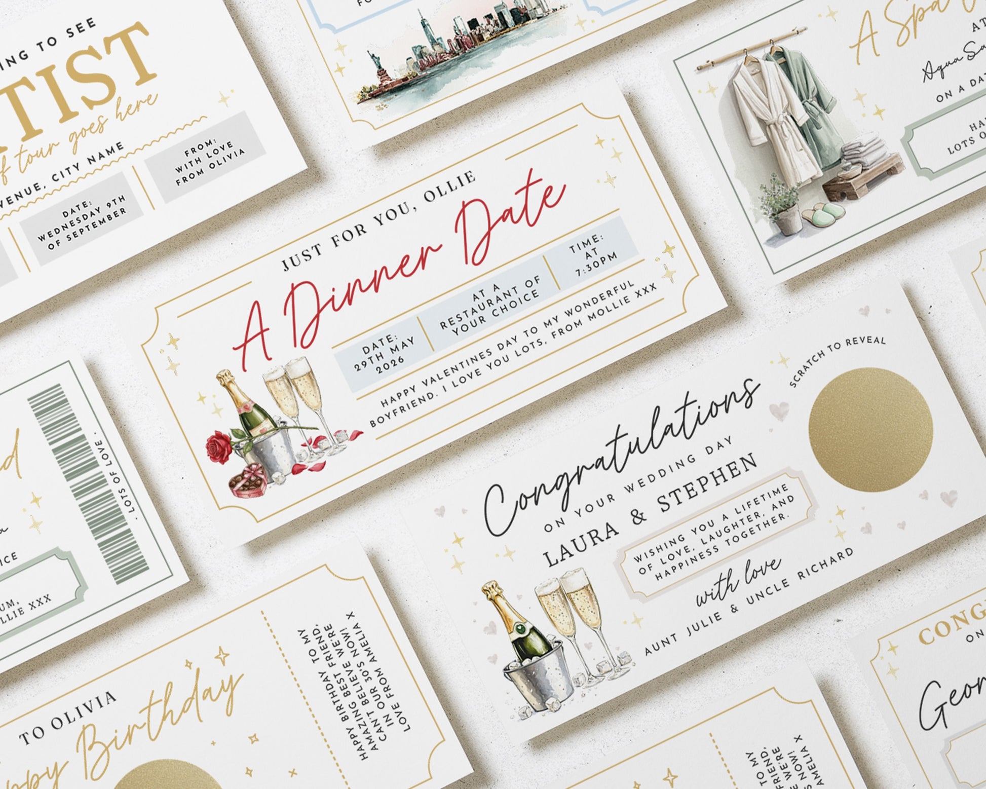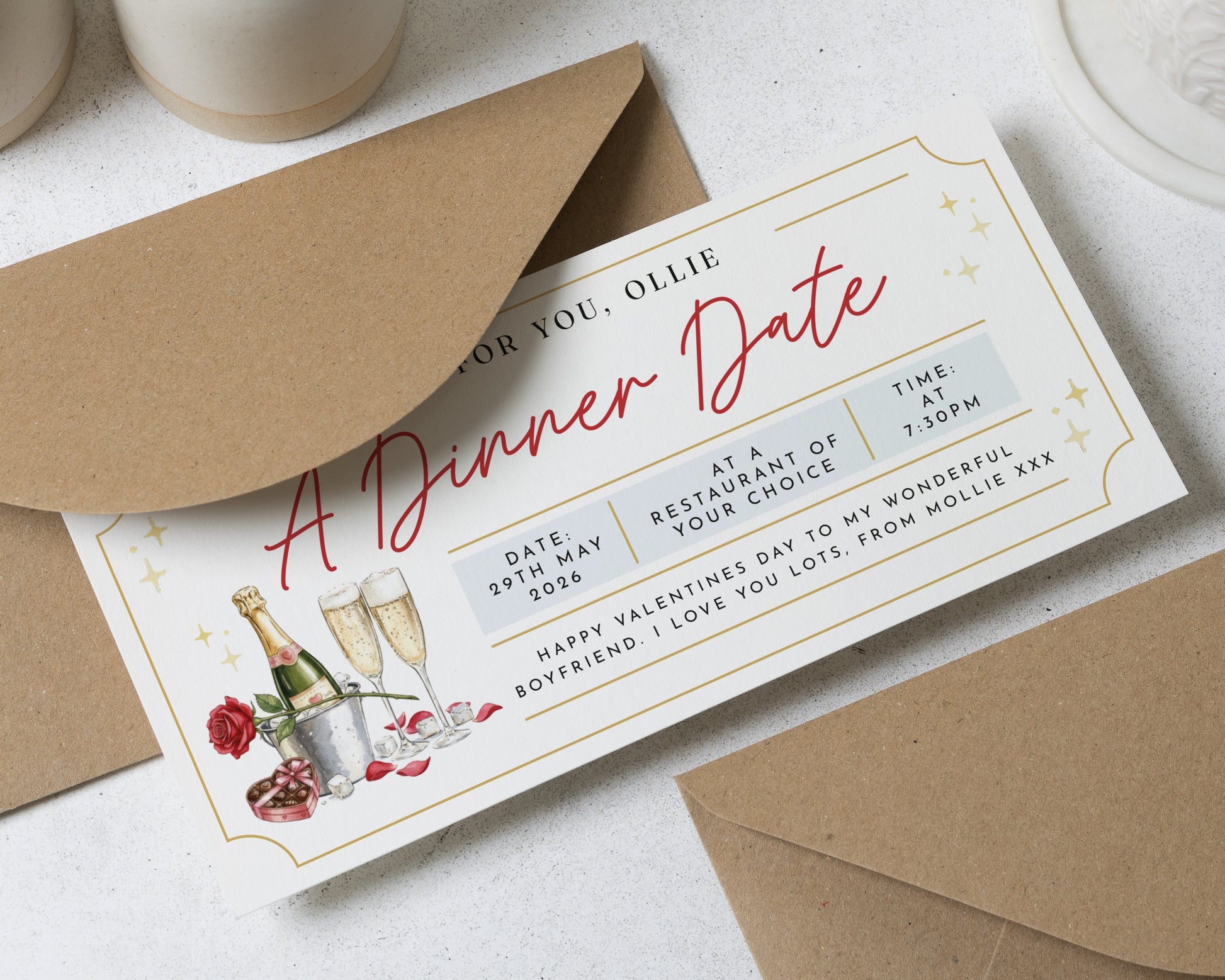 Personalised Dinner Date Gift Voucher, Valentines Day Gift for Boyfriend, Custom Date Night Voucher