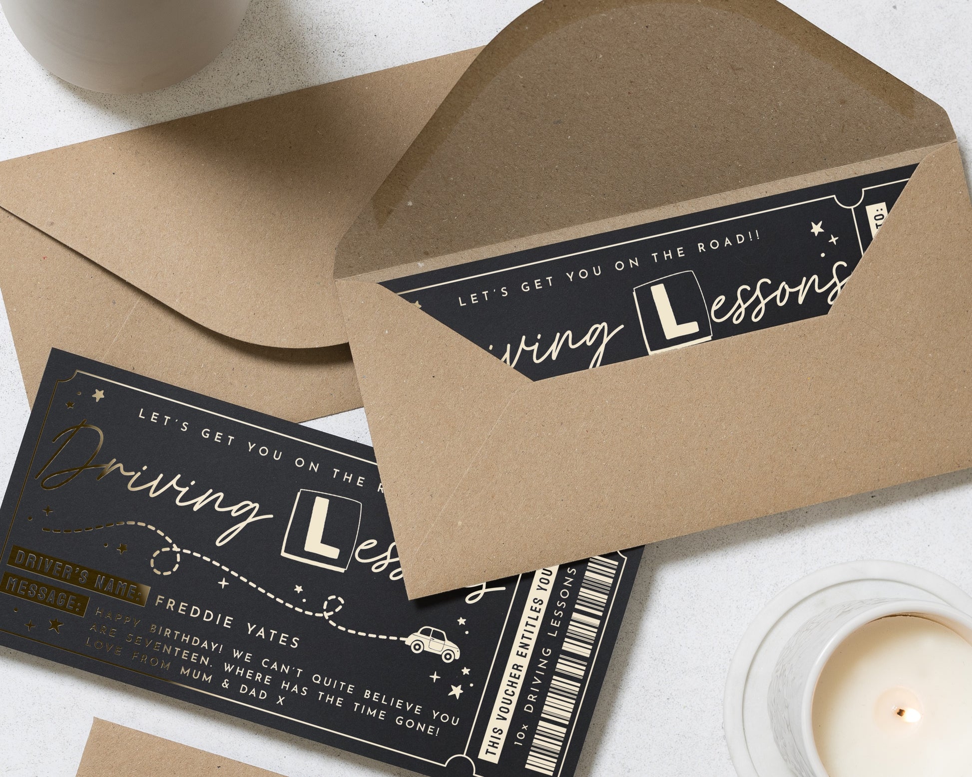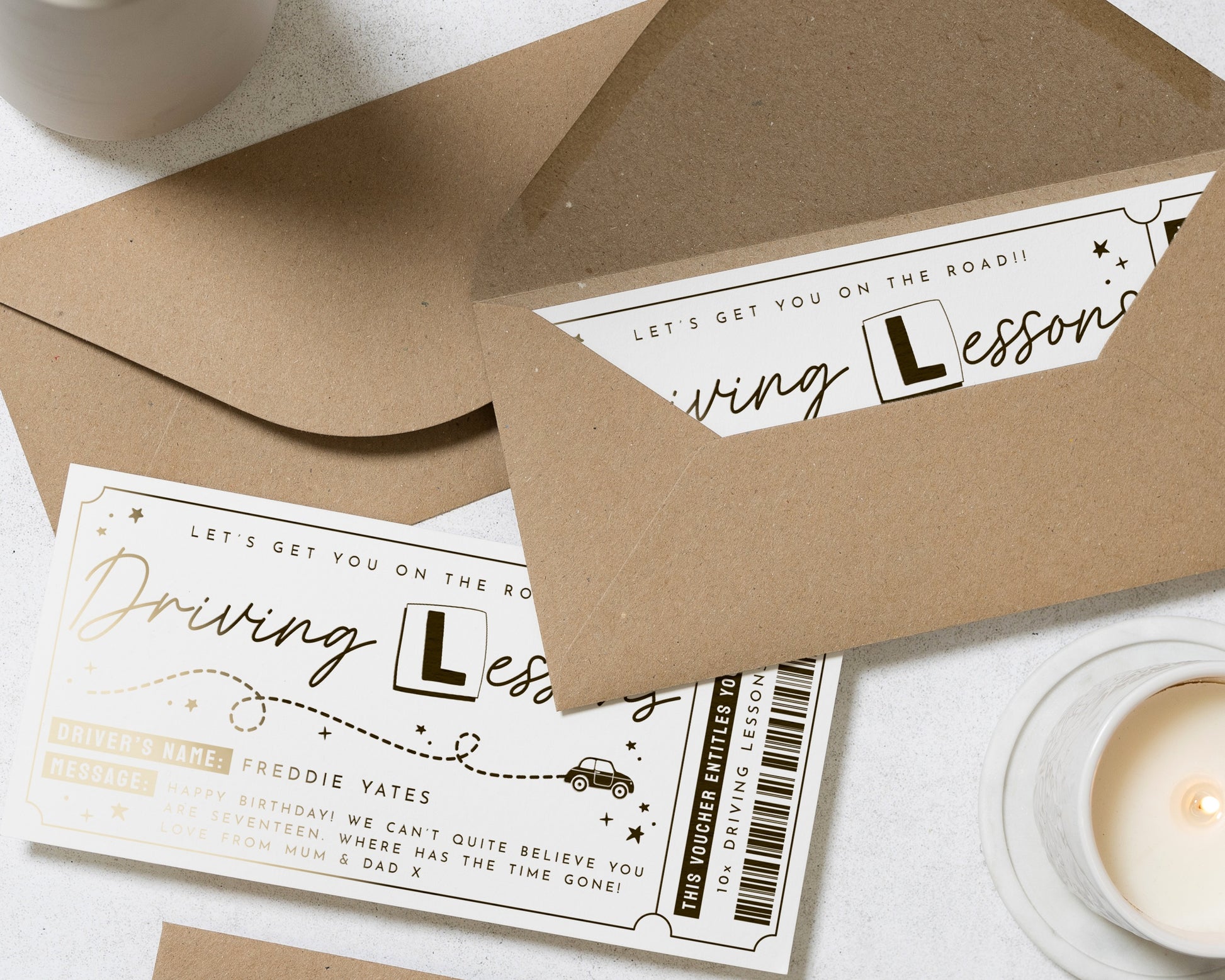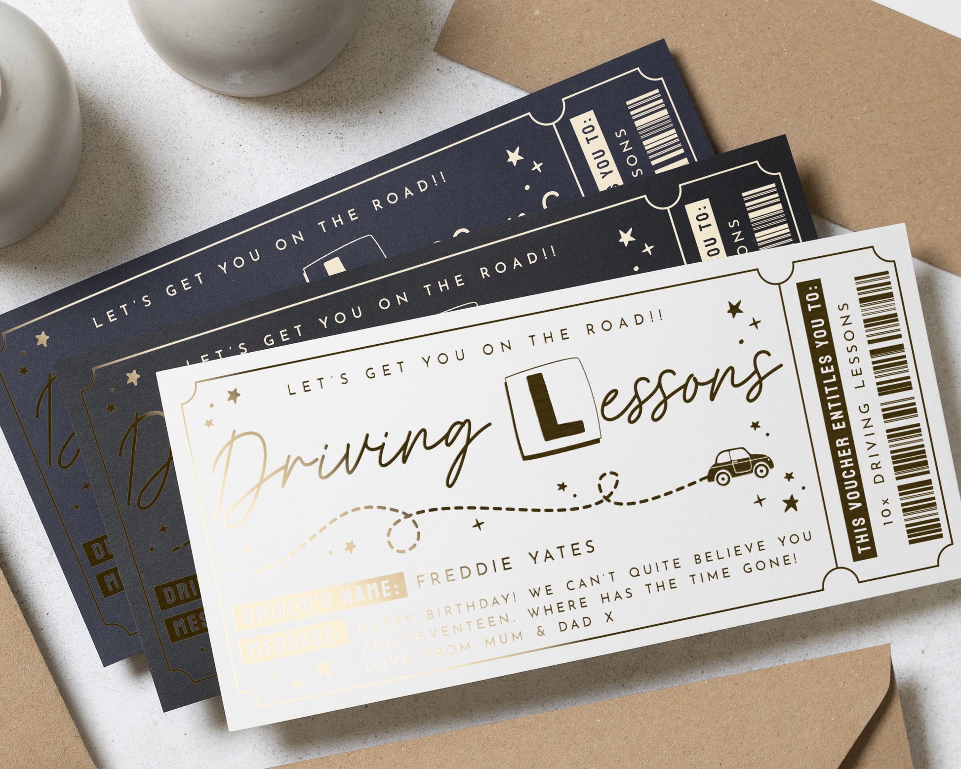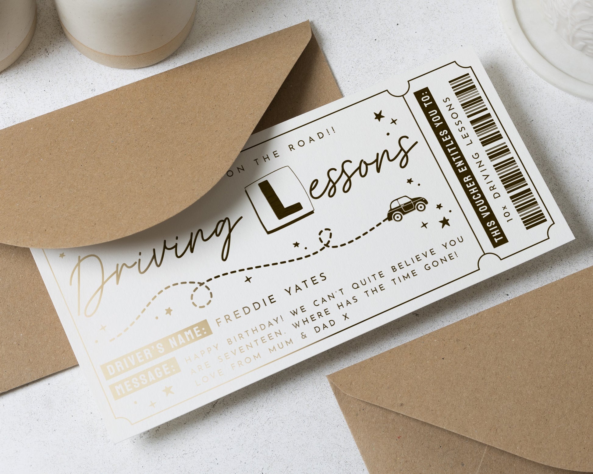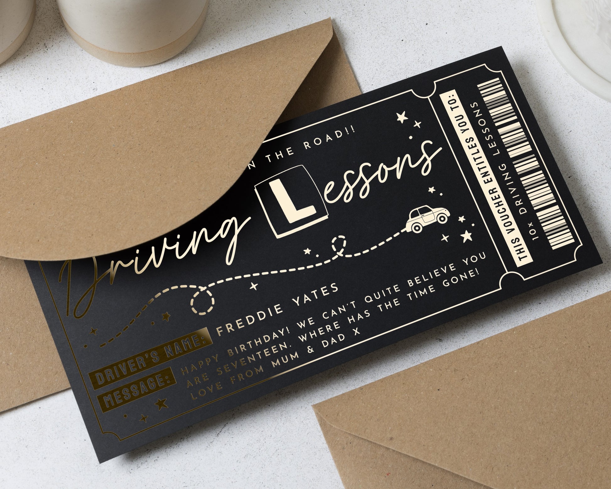 Personalised Driving Lessons Gift Voucher, Gold Foil, Birthday Gift For Him Or Her, Scratch To Reveal
