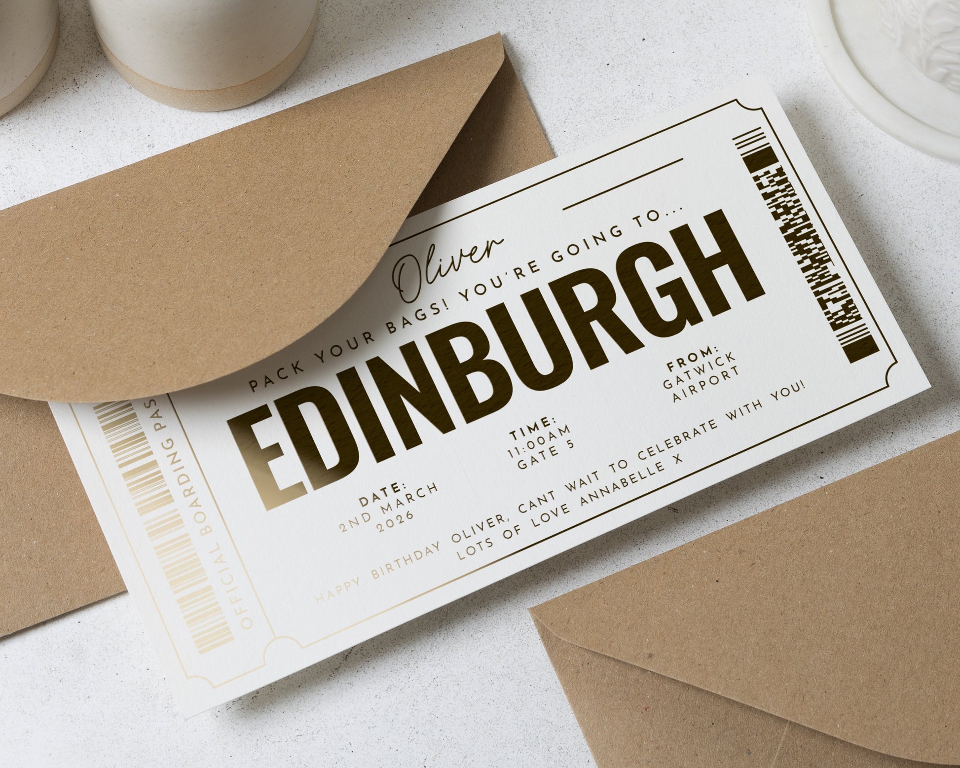 • Every voucher comes complete with a recycled Kraft envelope, ready to gift.