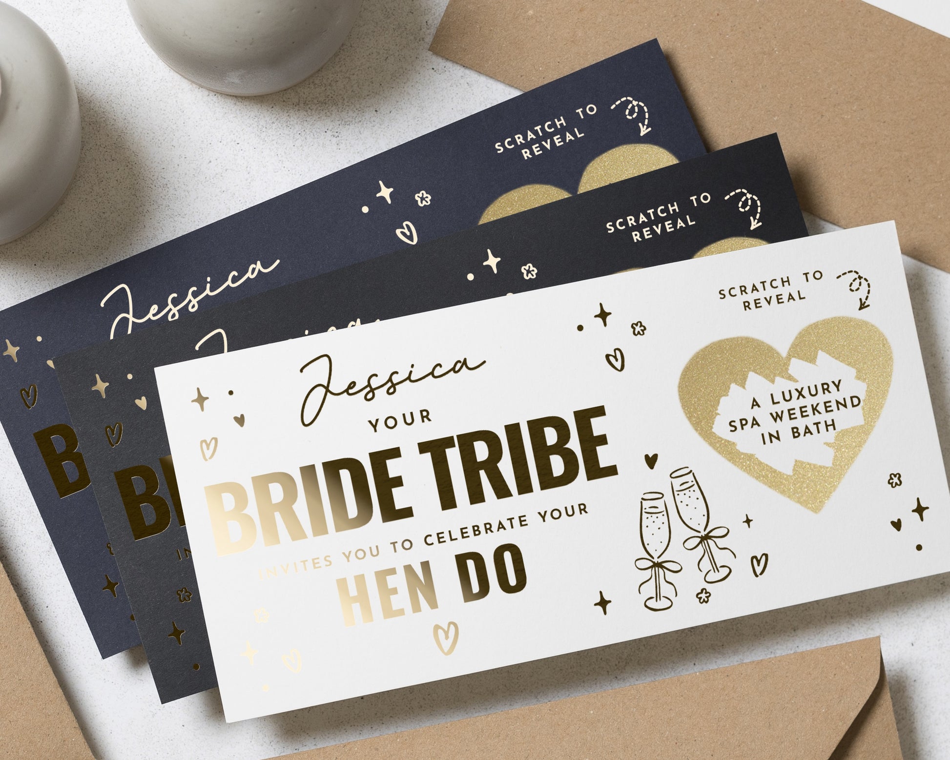 • Available in your choice of White, Navy, or Black card — each colour beautifully complements the foiled finish.