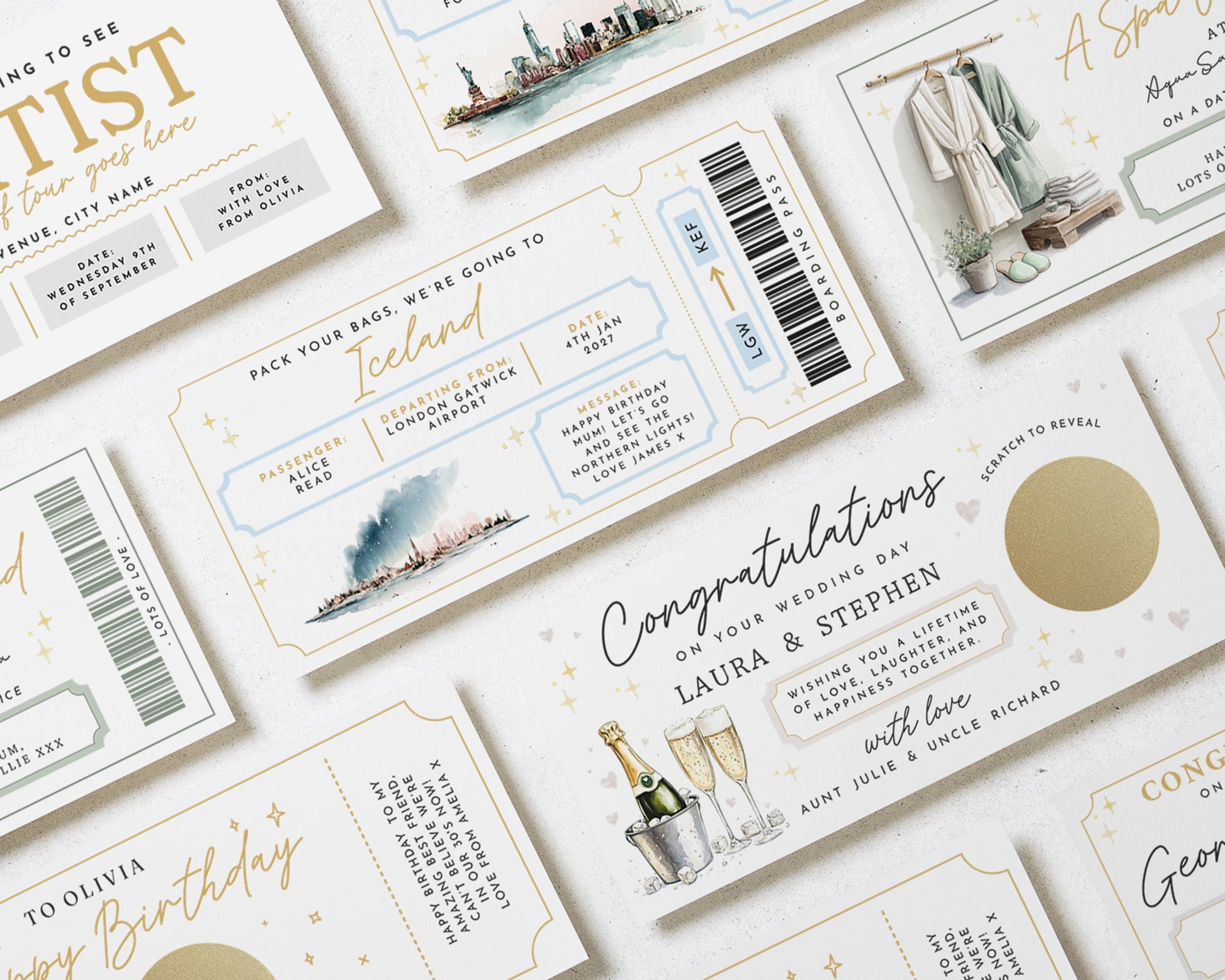 Surprise a loved one with this personalised Iceland holiday reveal voucher. Styled as a boarding pass, it's perfect for birthday trip announcements and is fully customisable for names, destinations, and your own special message.