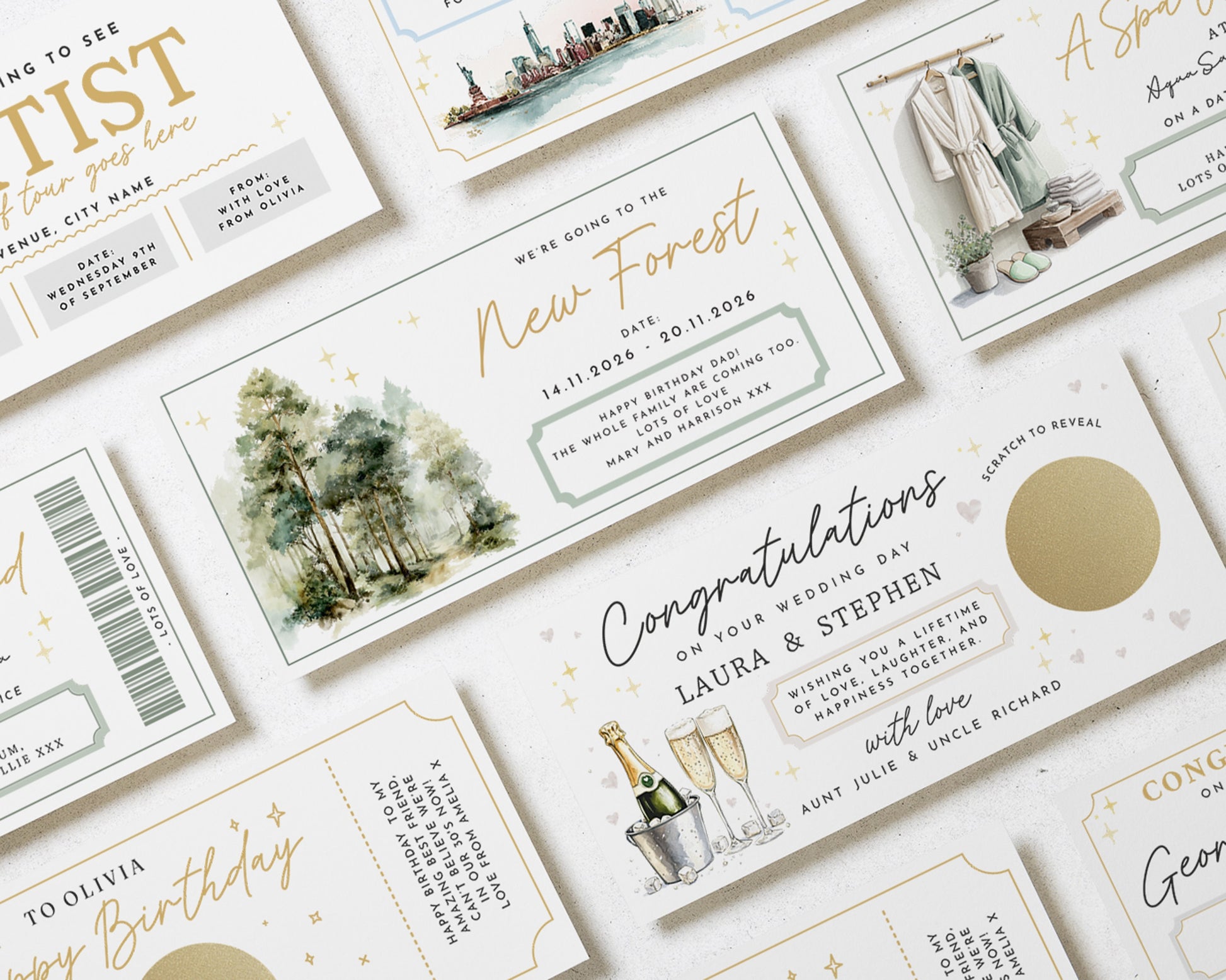• Each voucher card measures 210x99mm, and is printed on heavyweight premium cardstock.