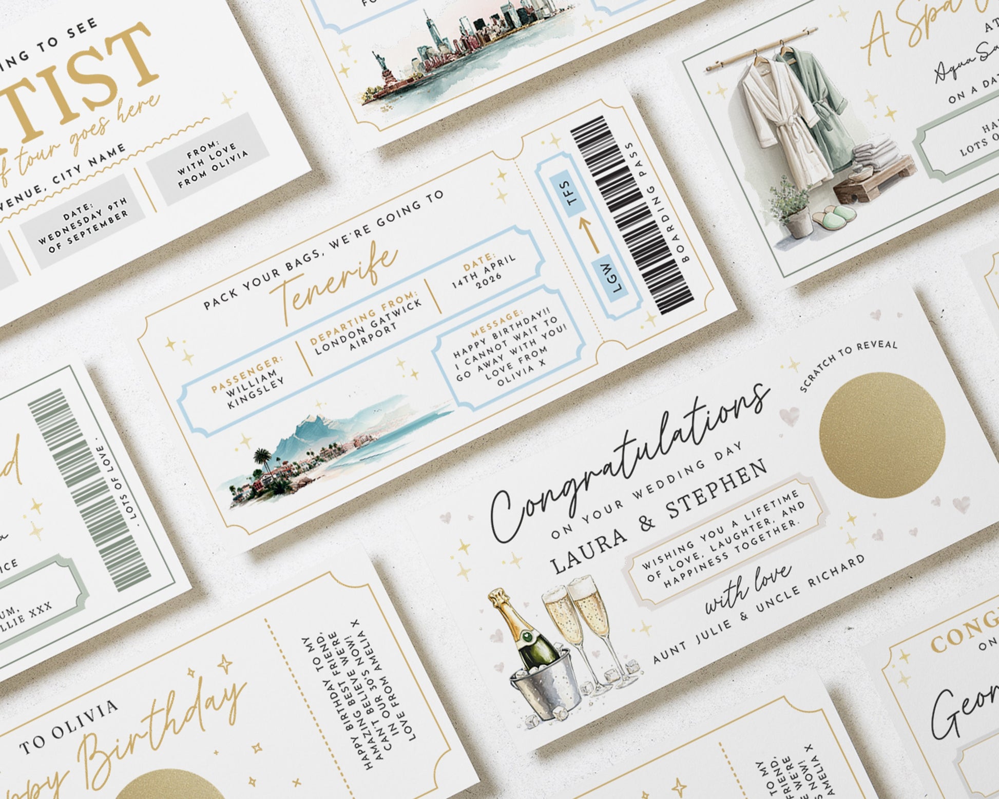 • Each voucher card measures 210x99mm, and is printed on heavyweight premium cardstock.