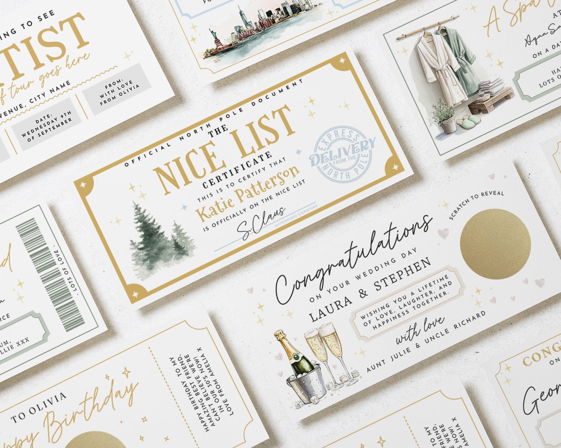 • Each voucher card measures 210x99mm, and is printed on heavyweight premium cardstock.