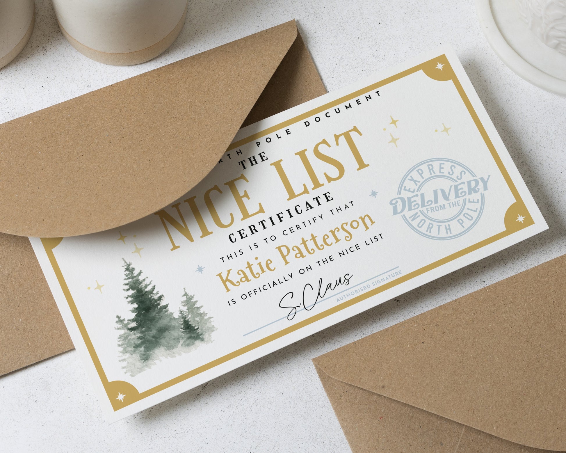 Personalised Nice List Certificate, North Pole Christmas Gift, Santa Certificate, Christmas Gift for Kids