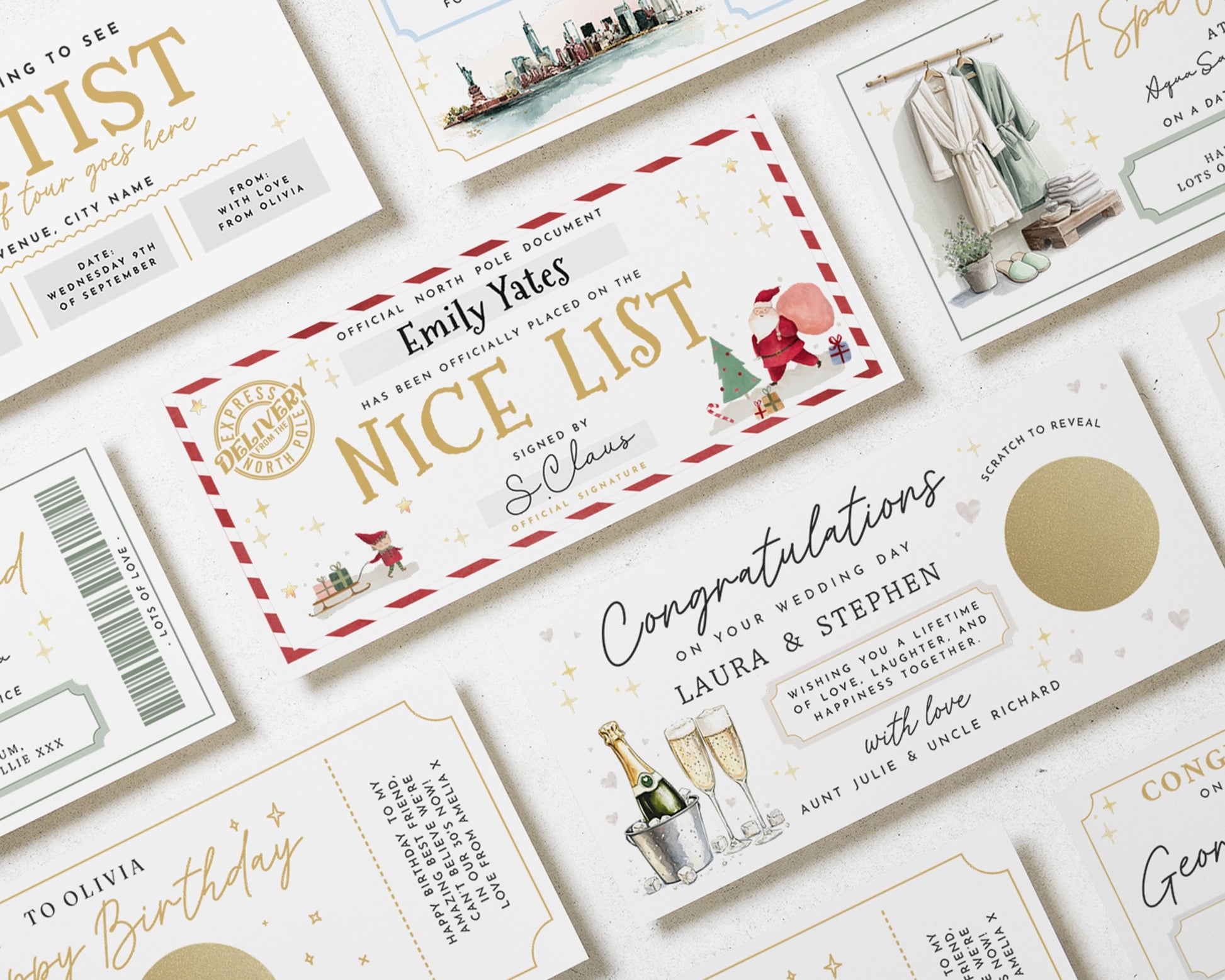 • Each voucher card measures 210x99mm, and is printed on heavyweight premium cardstock.