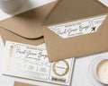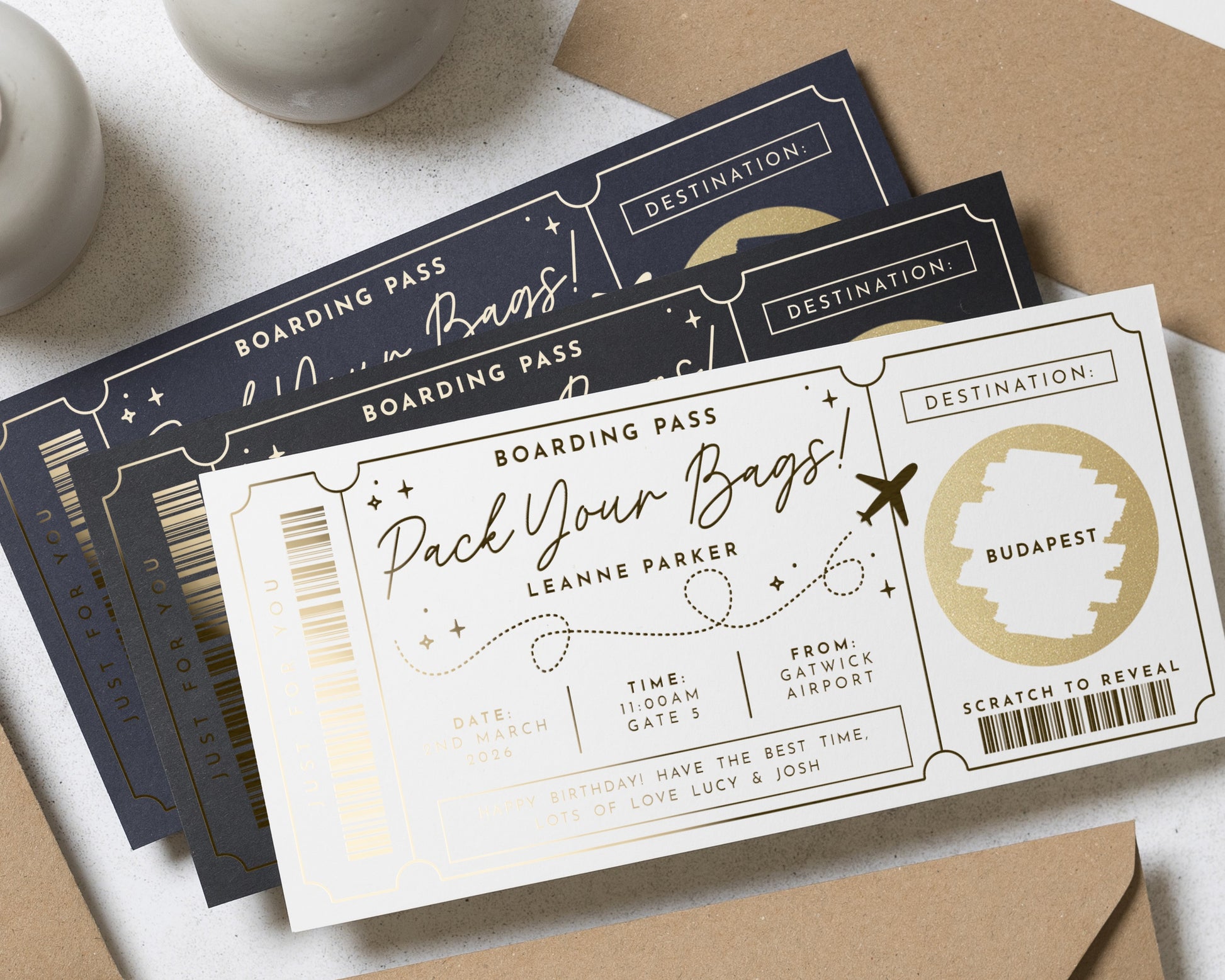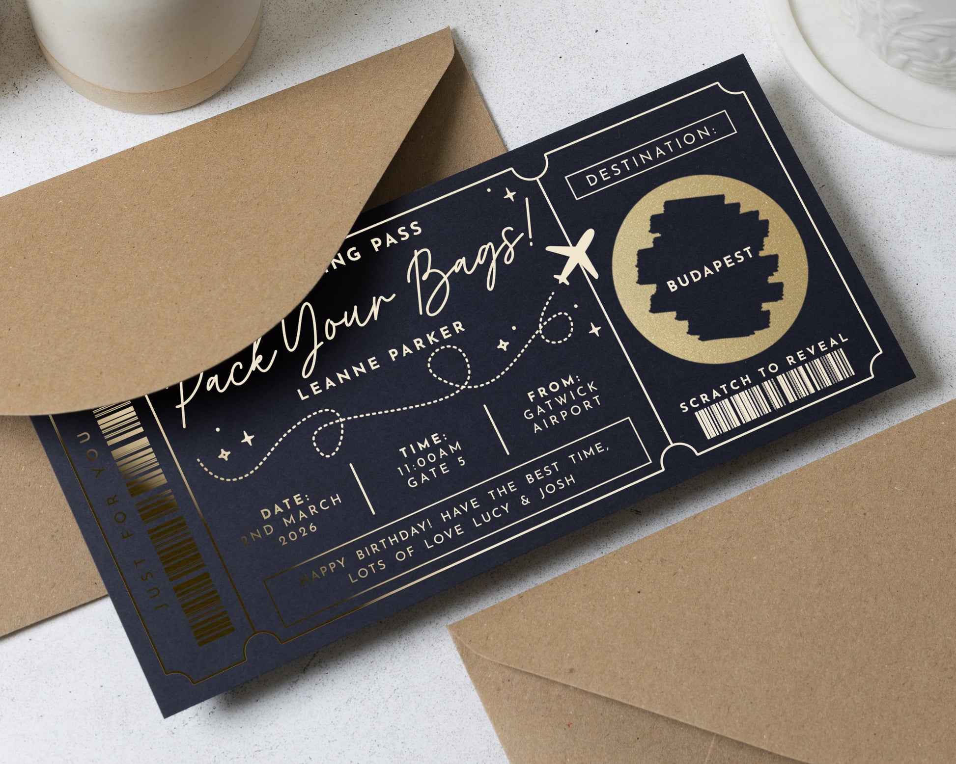 • Each voucher card measures 210x99mm, and is printed on heavyweight premium cardstock and finished with real gold foil detailing for a luxurious touch.