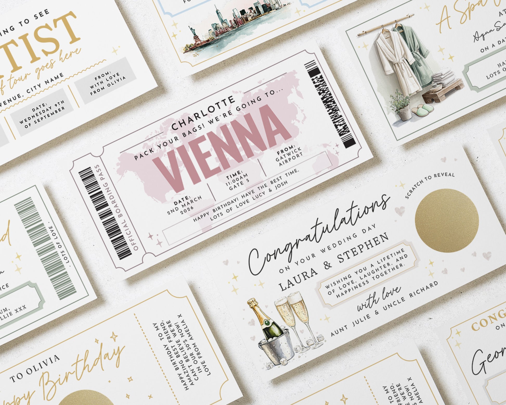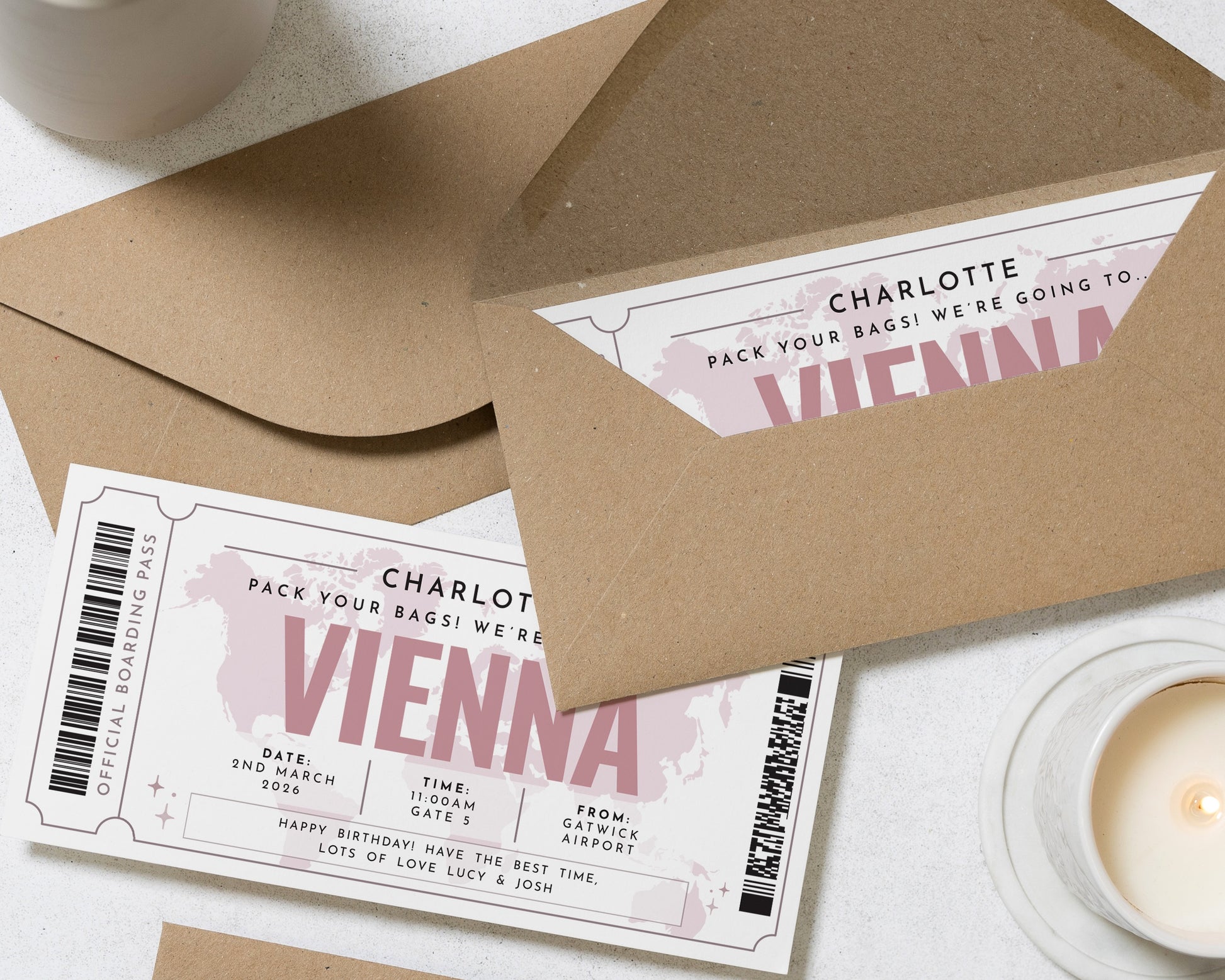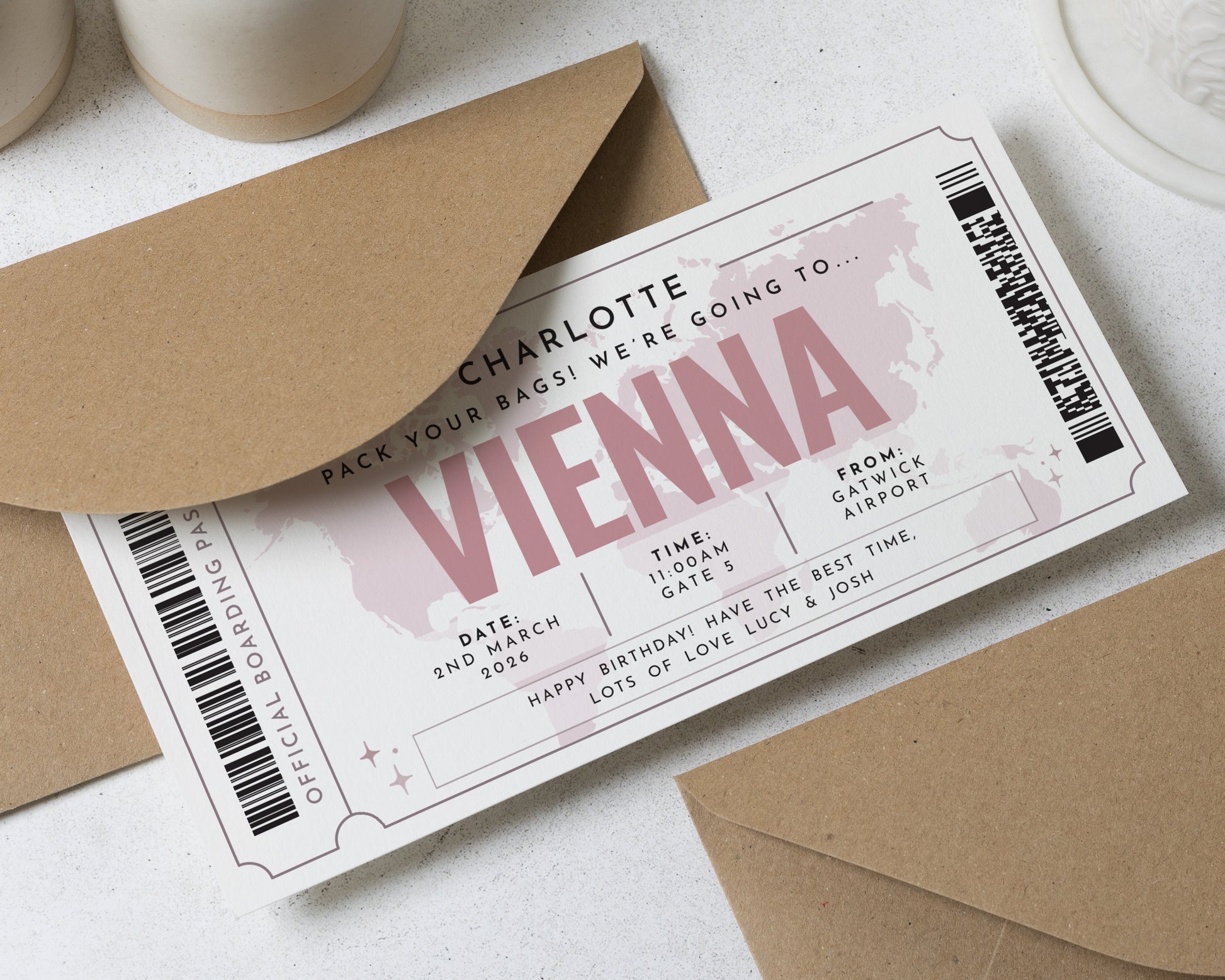 Personalised Pack Your Bags Gift Voucher, Vienna Holiday Boarding Pass, Birthday Gift For Her, Custom Travel Voucher