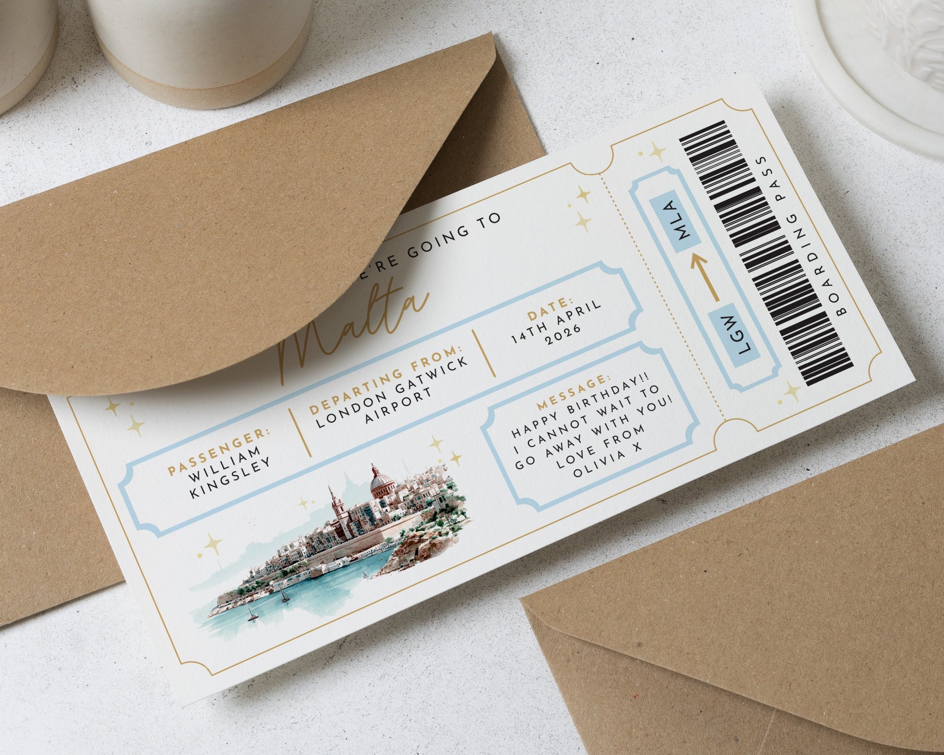 Personalised Pack Your Bags Gift Voucher, Holiday Reveal Ticket, Custom Boarding Pass Voucher, Birthday Travel Gift