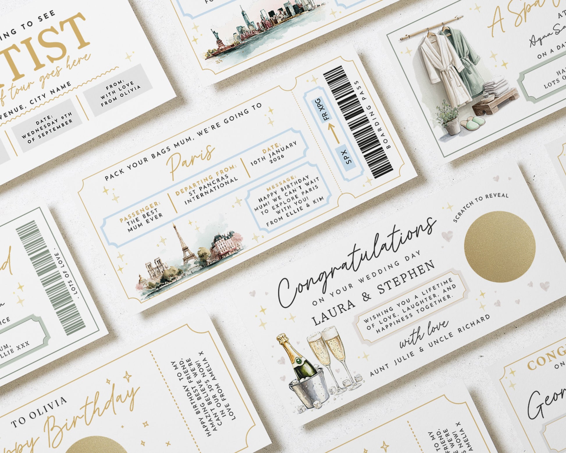 • Each voucher card measures 210x99mm, and is printed on heavyweight premium cardstock.