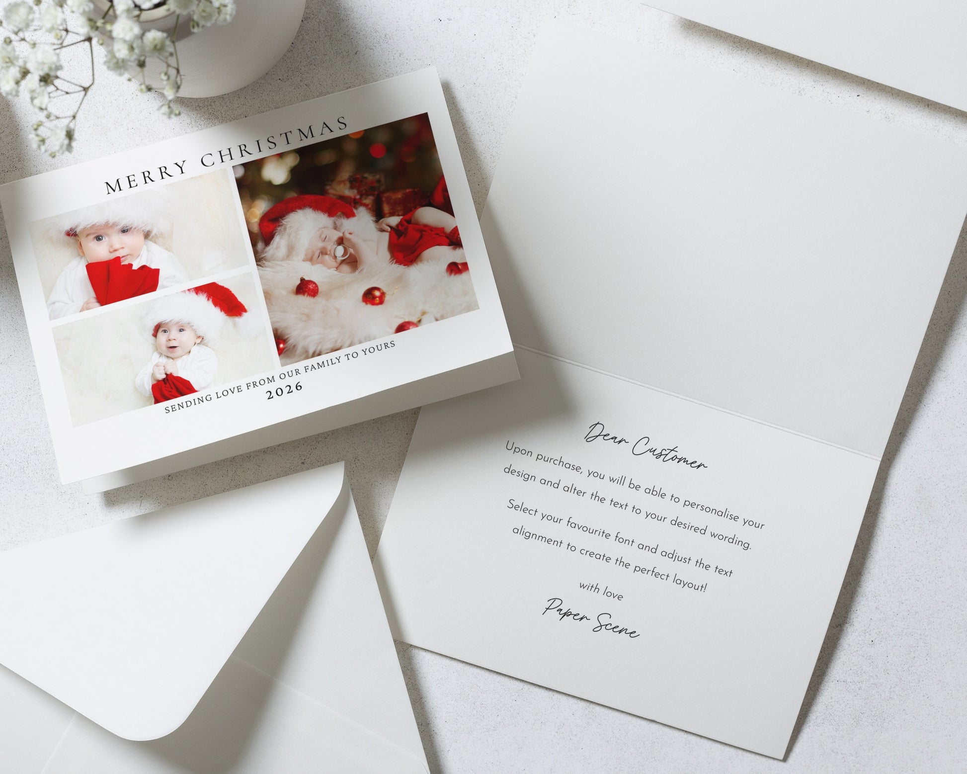 Our Christmas cards are fully personalised to you — from your chosen photo (or photos!) to the wording and layout. Our simple, classic designs let your photos do the talking, creating a clean and elegant look that feels effortlessly personal.