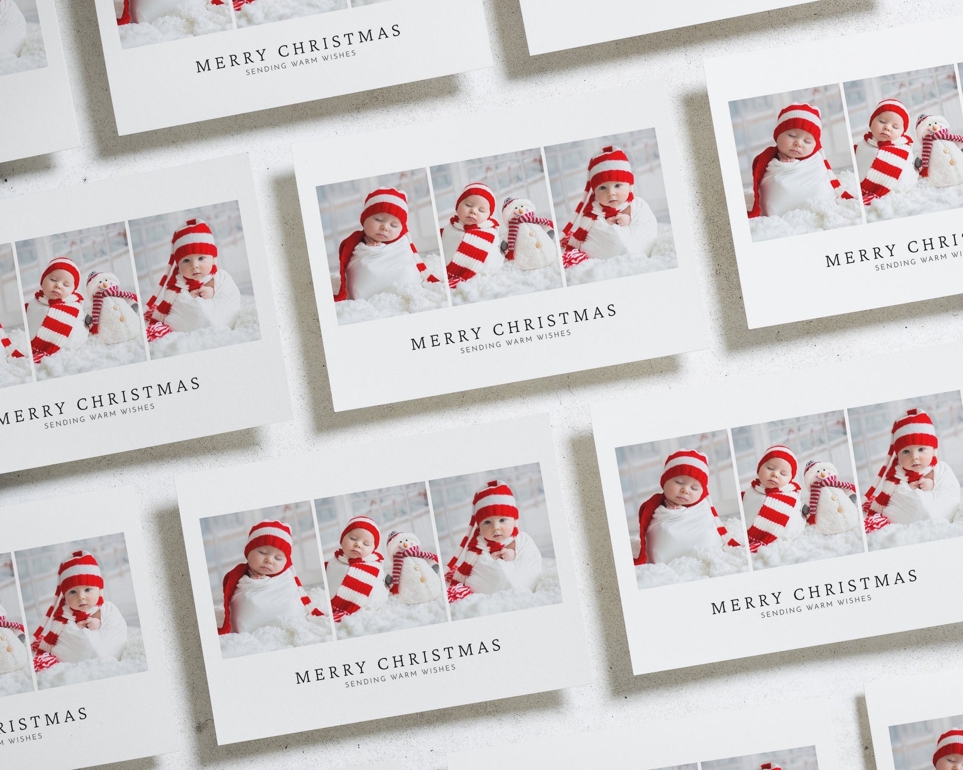 Showcase your favourite festive moments with this personalised photo Christmas card, featuring a clean, modern design and space for multiple photos.