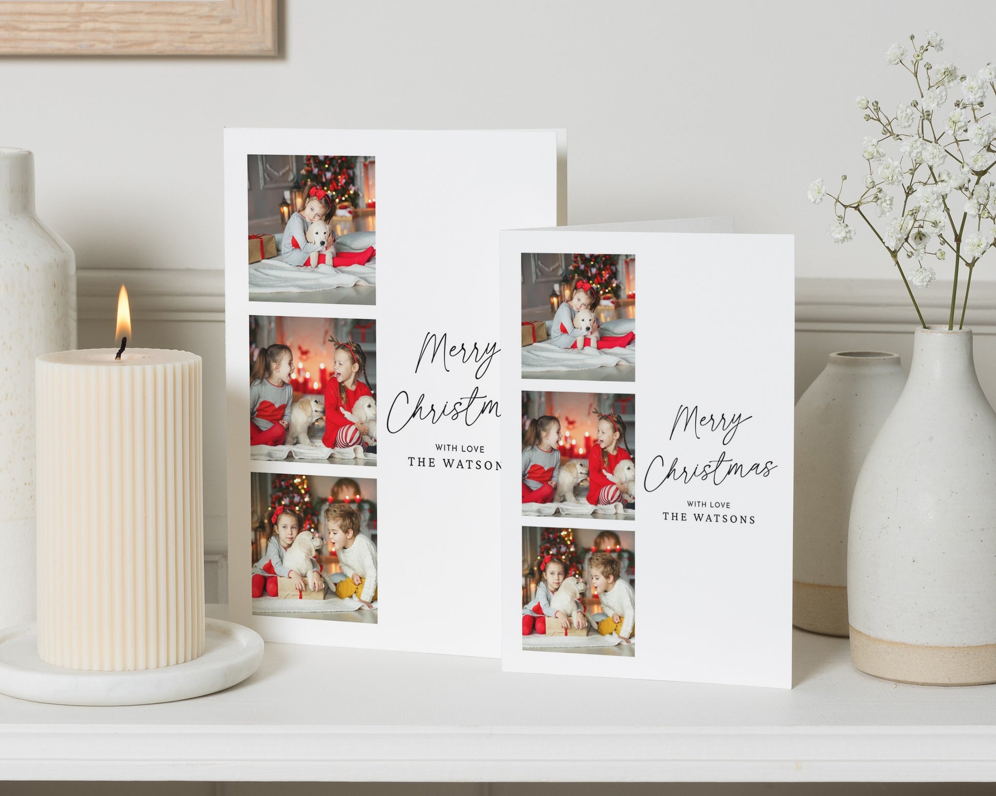 Choose from two classic folded greeting card sizes — perfect for your personalised message and photos: