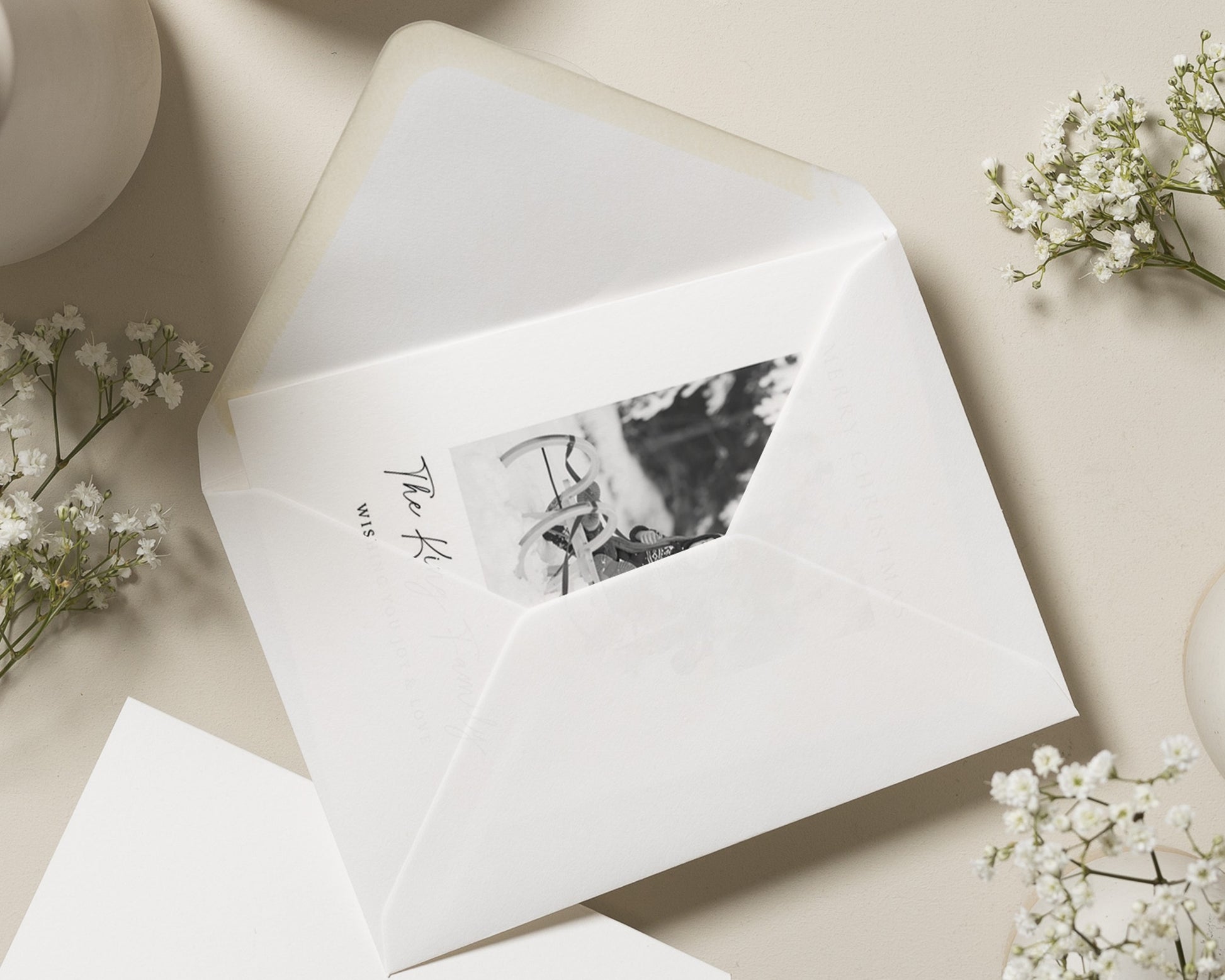 Every order includes premium heavyweight white envelopes with a diamond flap.