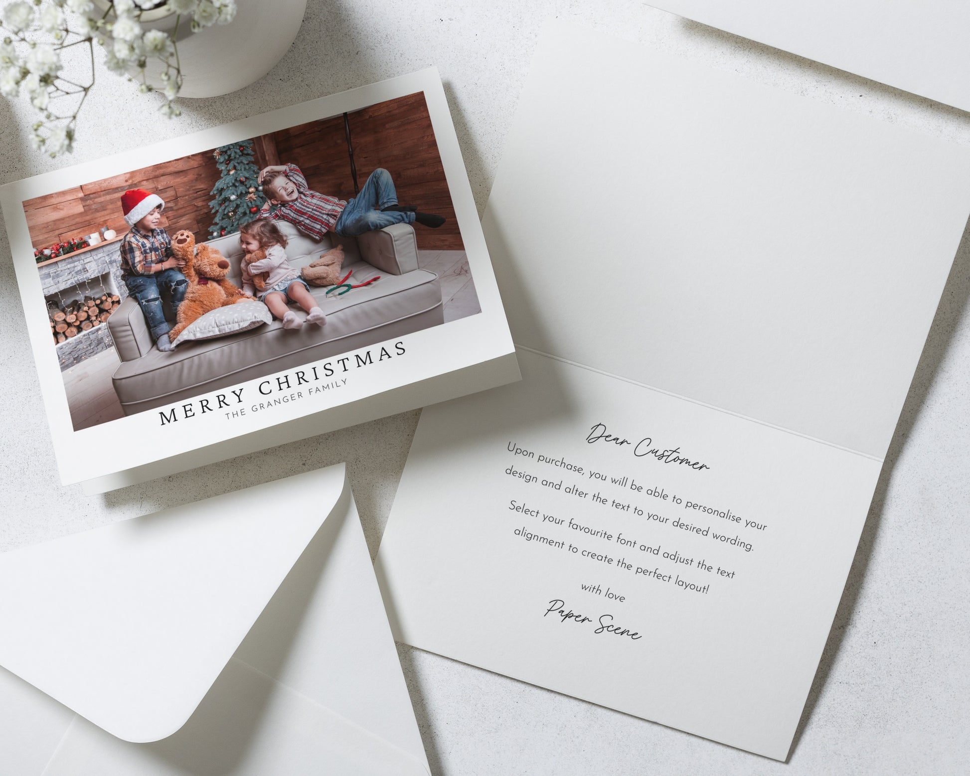 Our Christmas cards are fully personalised to you — from your chosen photo (or photos!) to the wording and layout. Our simple, classic designs let your photos do the talking, creating a clean and elegant look that feels effortlessly personal.