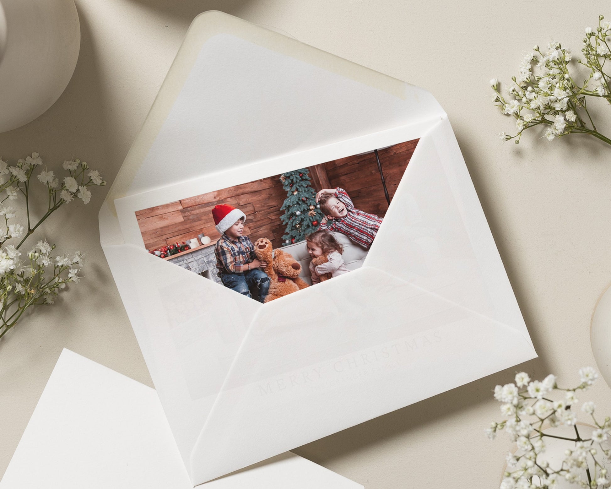 Every order includes premium heavyweight white envelopes with a diamond flap.