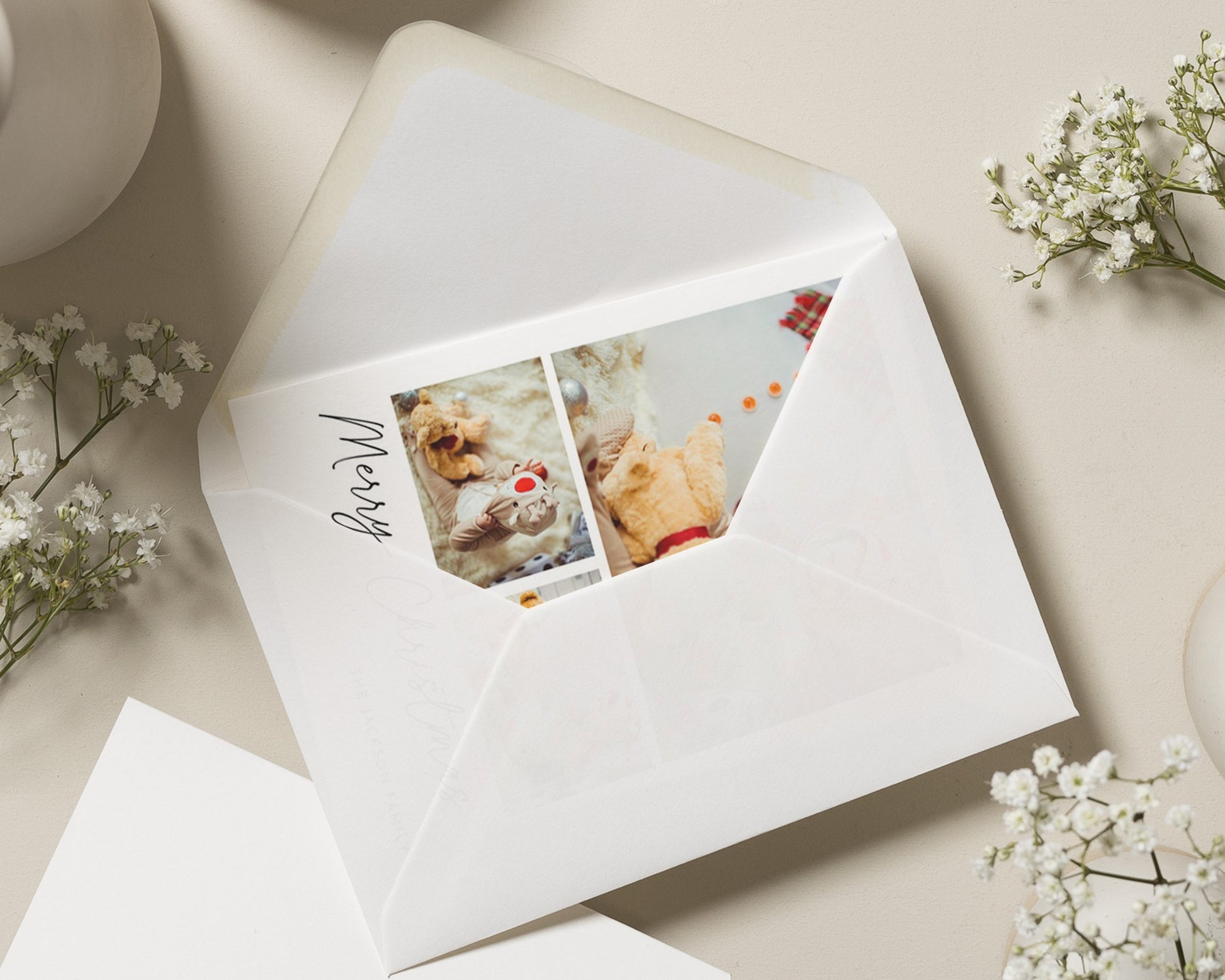 Our Christmas cards are fully personalised to you — from your chosen photo (or photos!) to the wording and layout. Our simple, classic designs let your photos do the talking, creating a clean and elegant look that feels effortlessly personal.