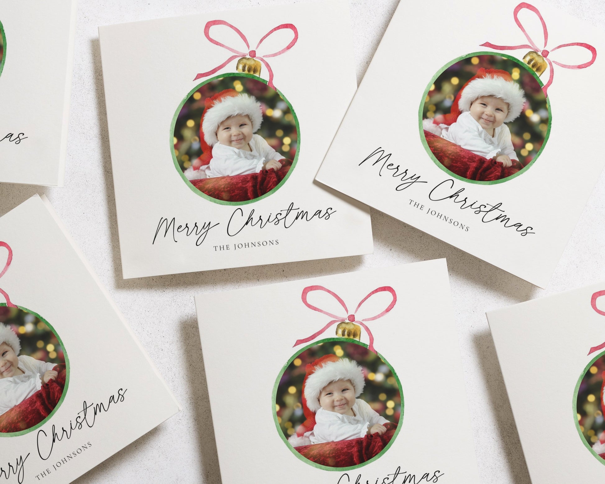 Celebrate the season with this personalised photo Christmas card featuring your favourite image in a festive bauble design. Perfect for families, this square card adds a special touch to your holiday greetings.