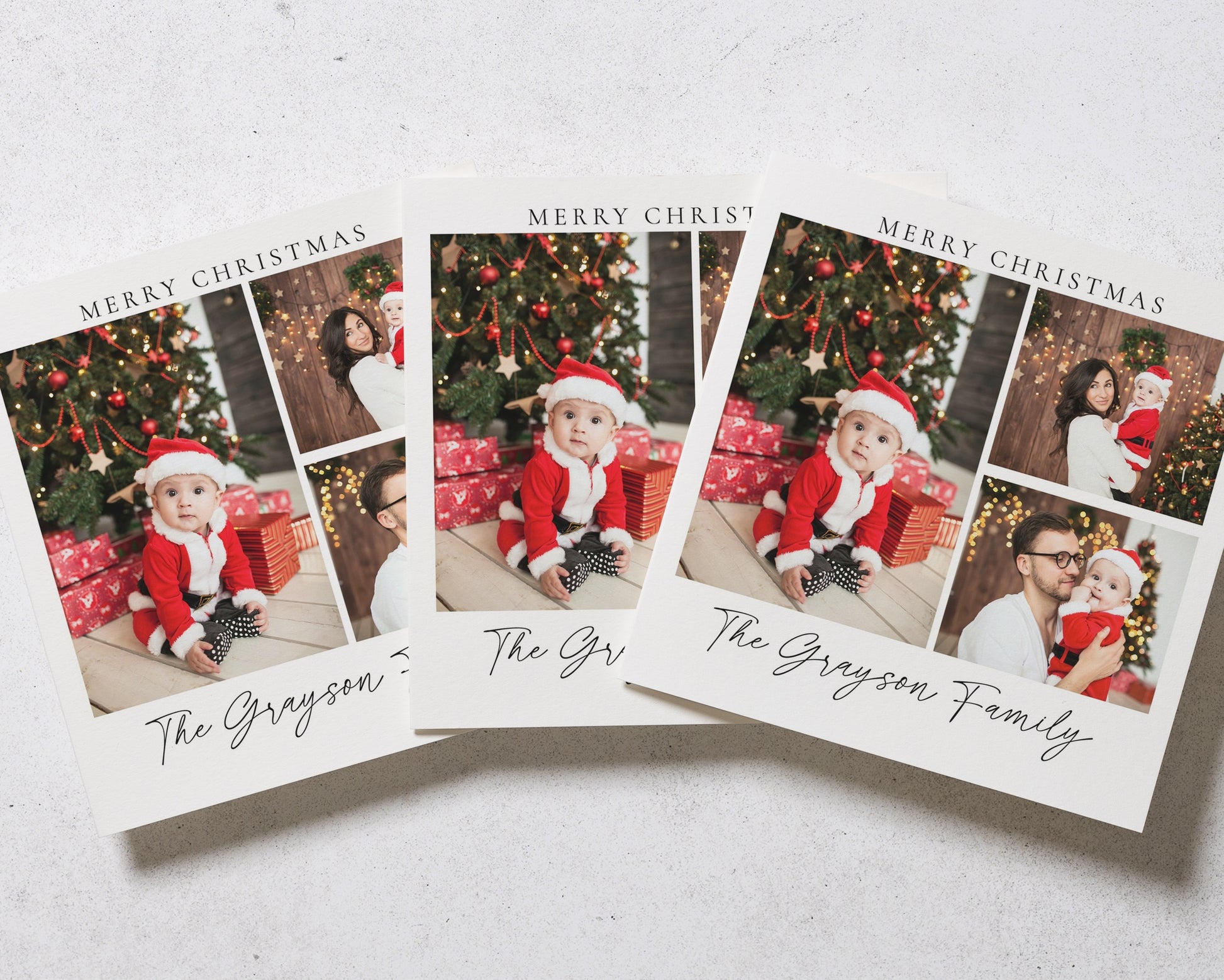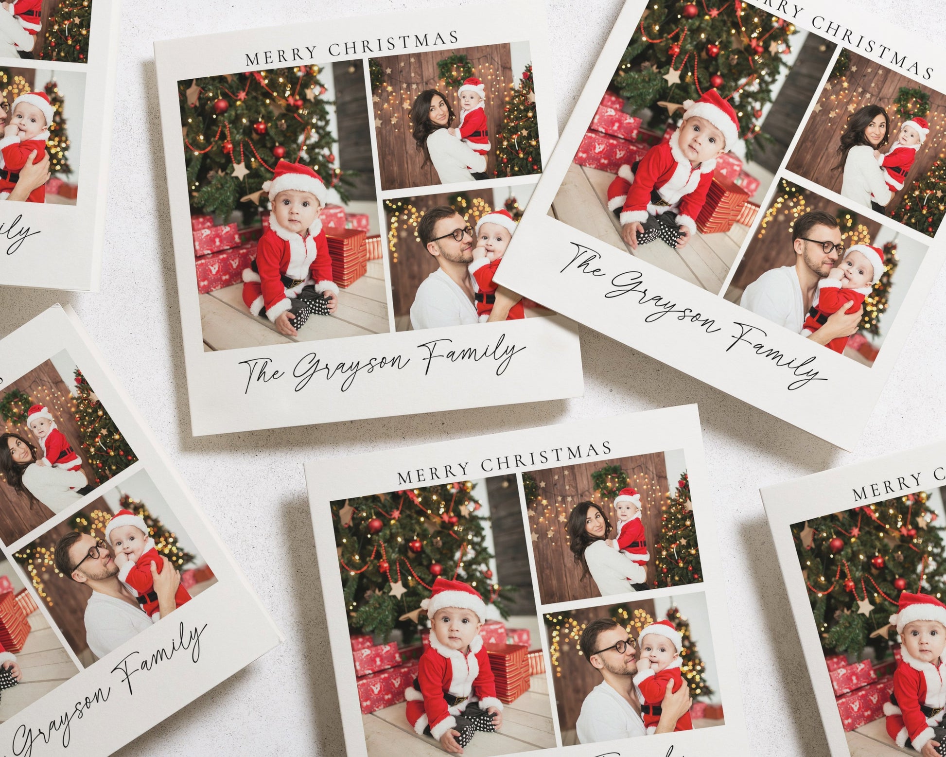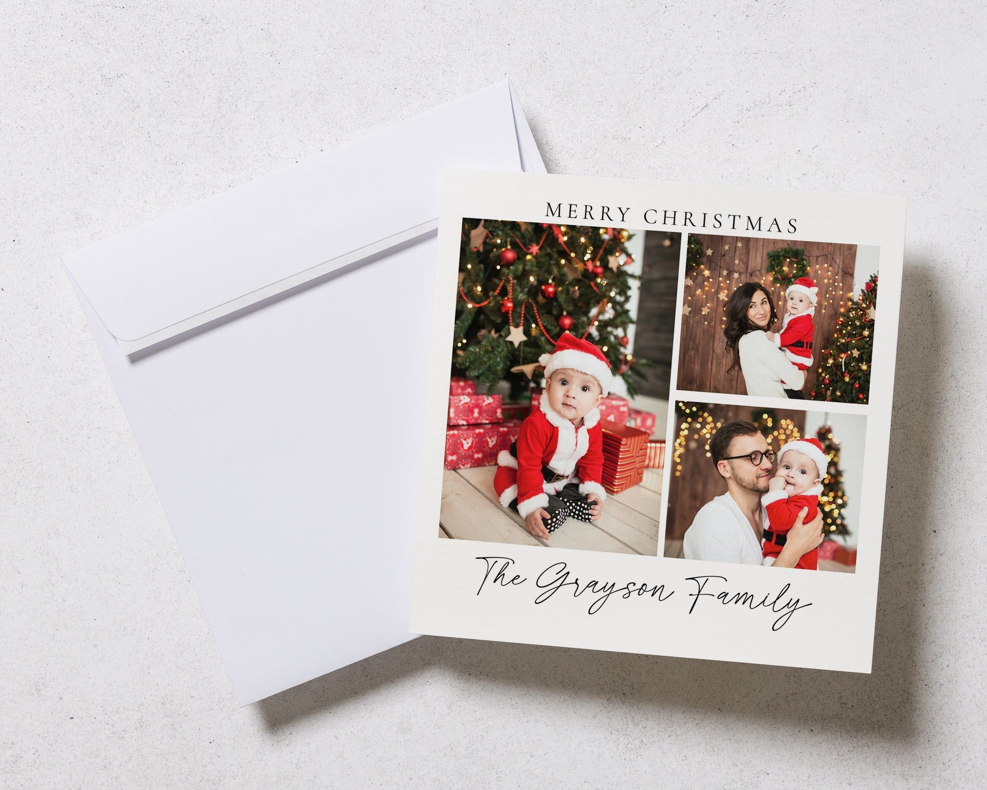 Celebrate the festive season with this personalised photo Christmas card, featuring your favourite family moments in a modern square design.