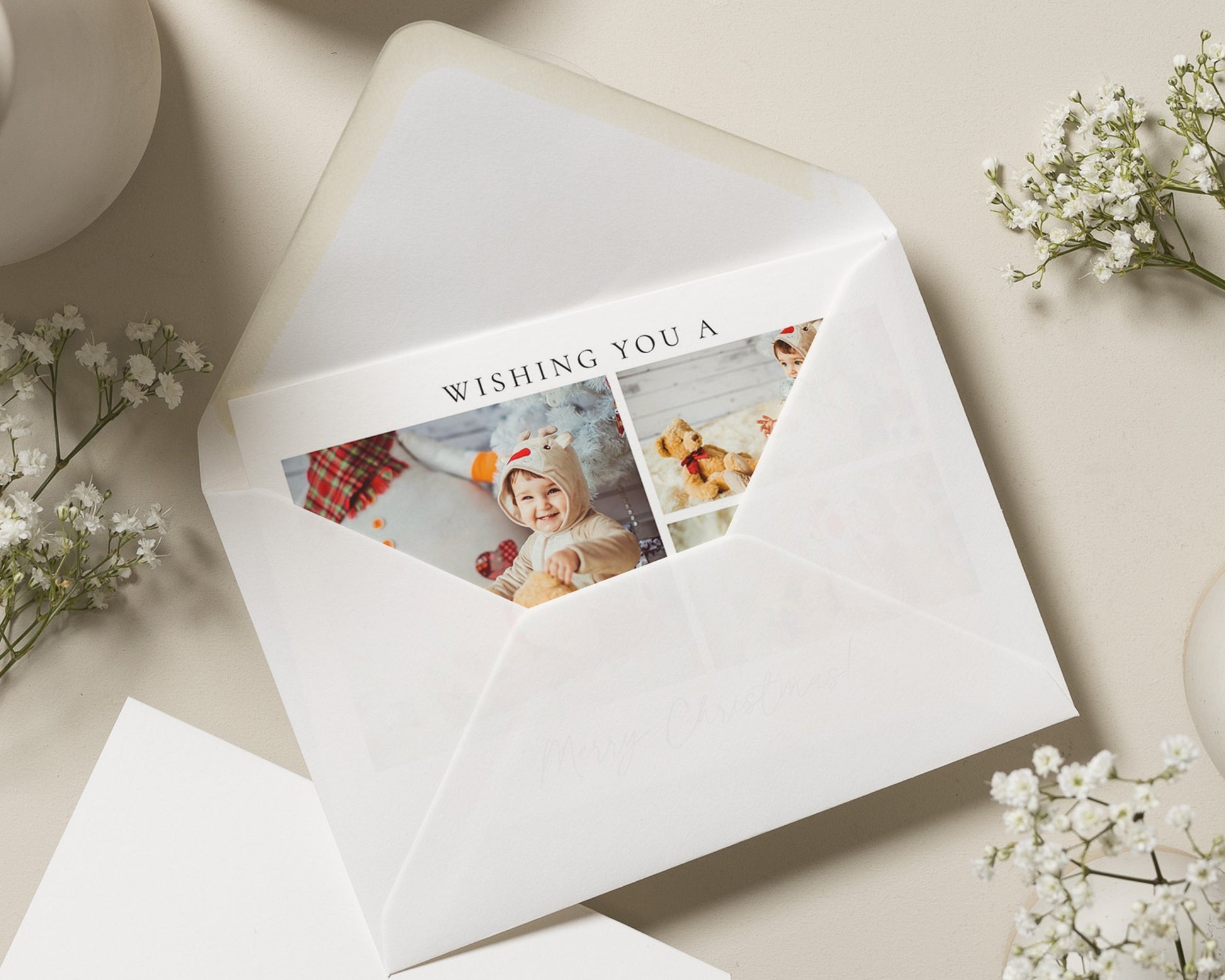 Our Christmas cards are fully personalised to you — from your chosen photo (or photos!) to the wording and layout. Our simple, classic designs let your photos do the talking, creating a clean and elegant look that feels effortlessly personal.