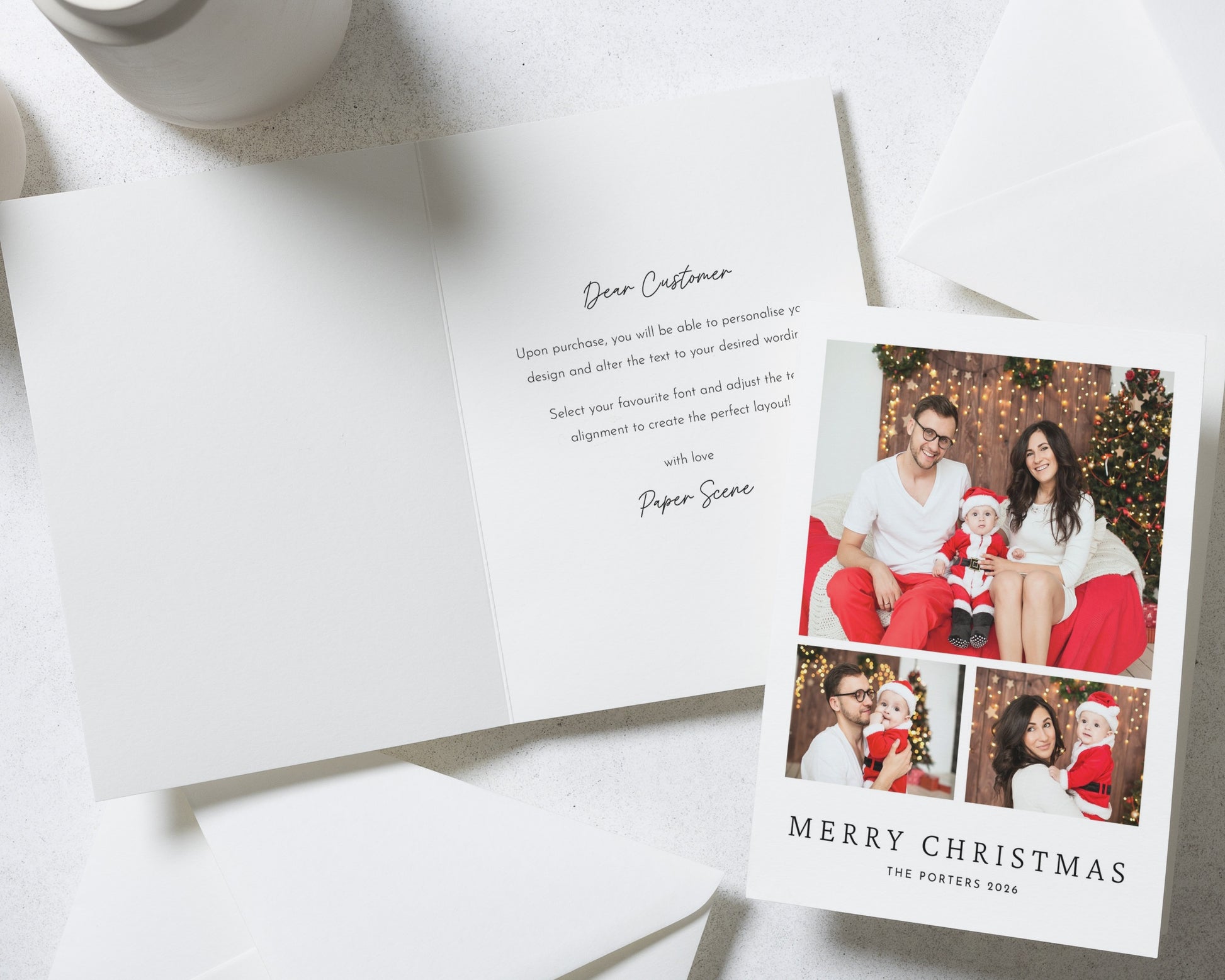 Showcase your favourite family moments with this personalised photo Christmas card. Add your own photos and names for a truly unique festive greeting.