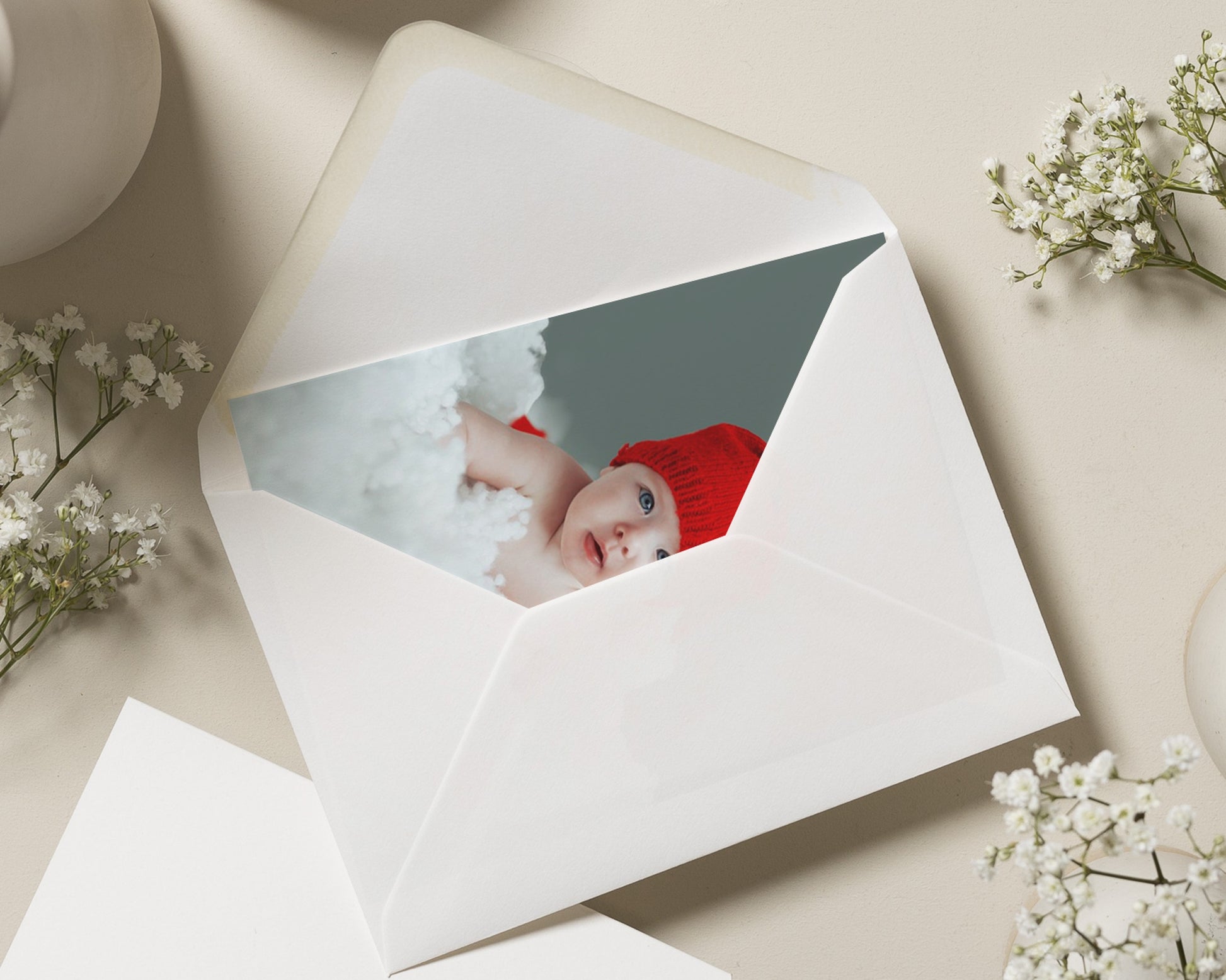 Every order includes premium heavyweight white envelopes with a diamond flap.