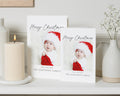 Celebrate your family's festive moments with this personalised photo Christmas card featuring a sweet baby in a Santa hat. Add your family name for a unique touch.