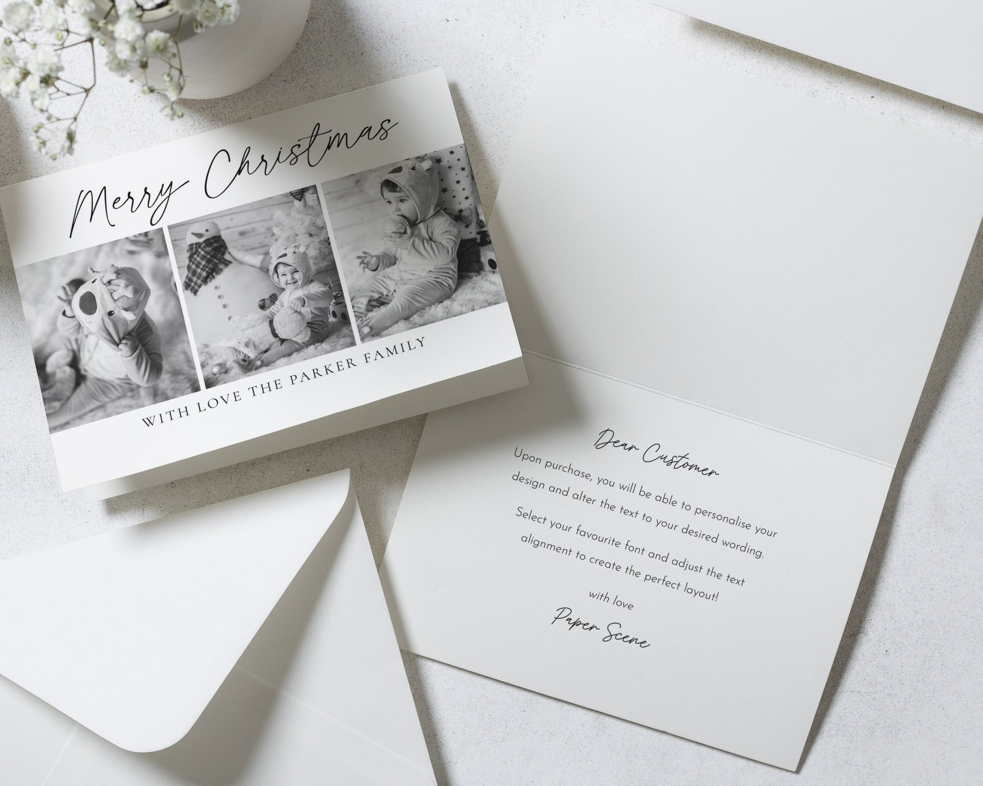 Our Christmas cards are fully personalised to you — from your chosen photo (or photos!) to the wording and layout. Our simple, classic designs let your photos do the talking, creating a clean and elegant look that feels effortlessly personal.
