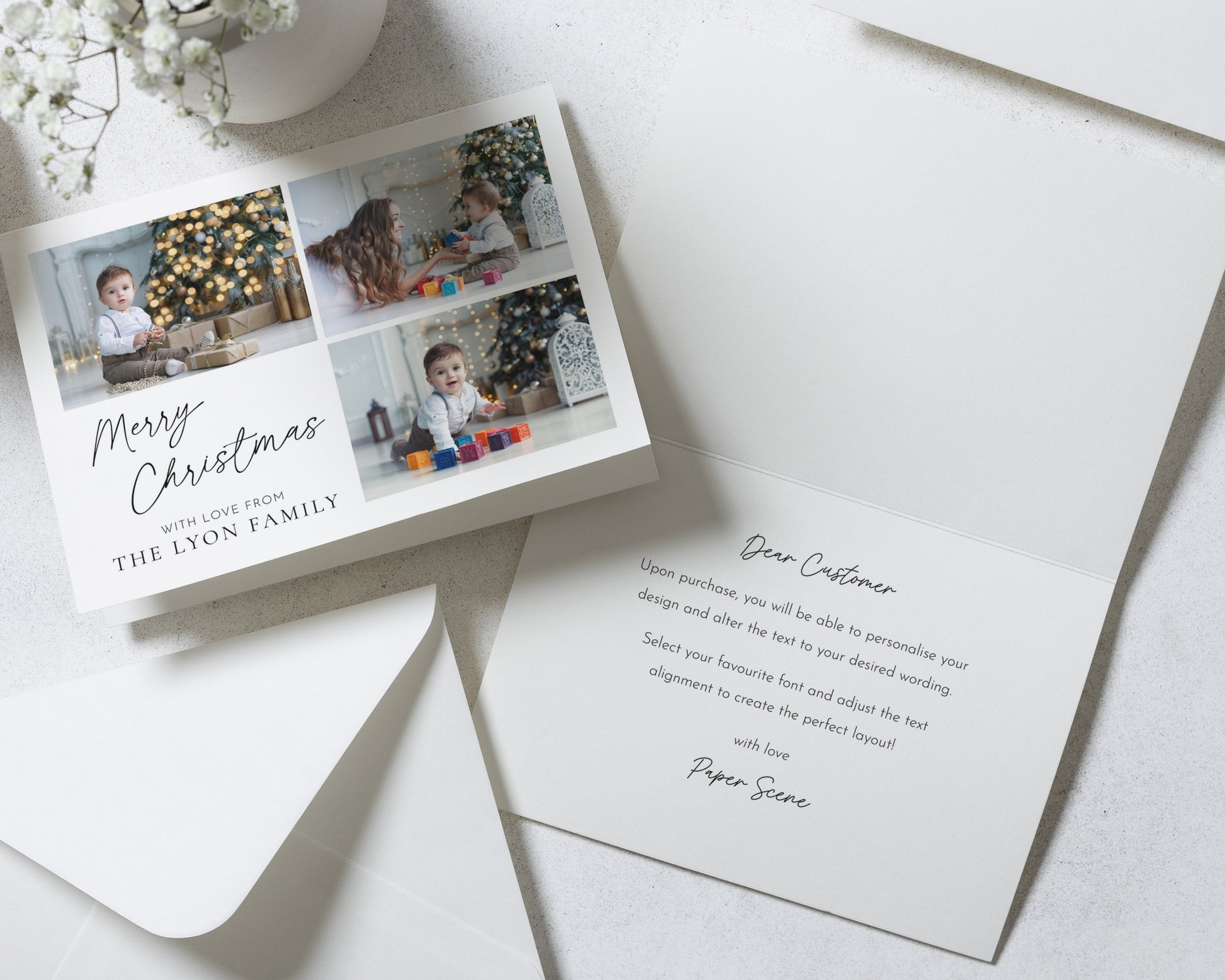 Share your favourite family moments with this personalised photo Christmas card. Add your own photos and family name for a truly special festive greeting.