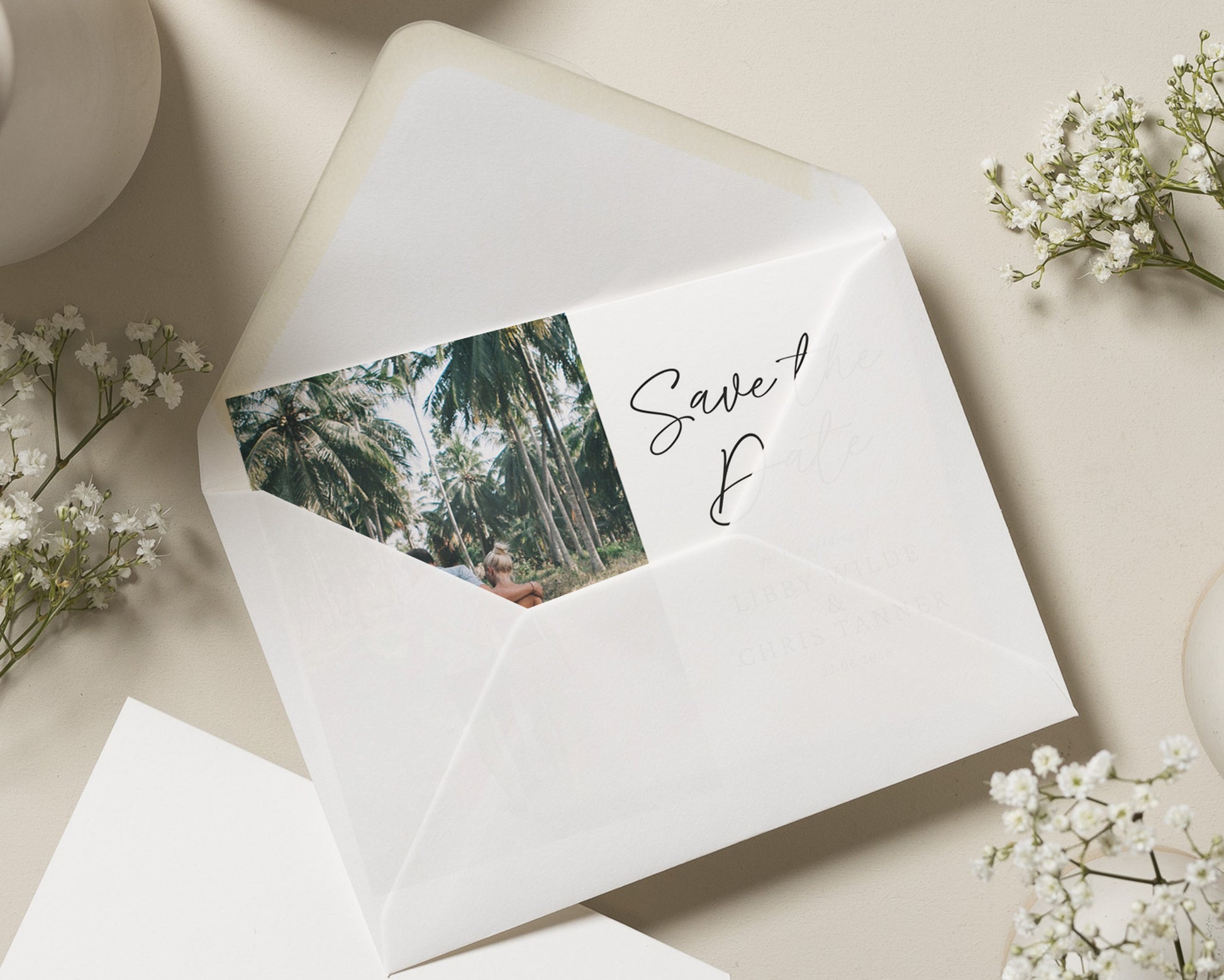 Our Save the Date cards are fully customisable – you can change all of the text to match your names, date, and wedding vibe. Whether you're planning a formal celebration or something more relaxed, we’ll help you create a design that feels uniquely you.