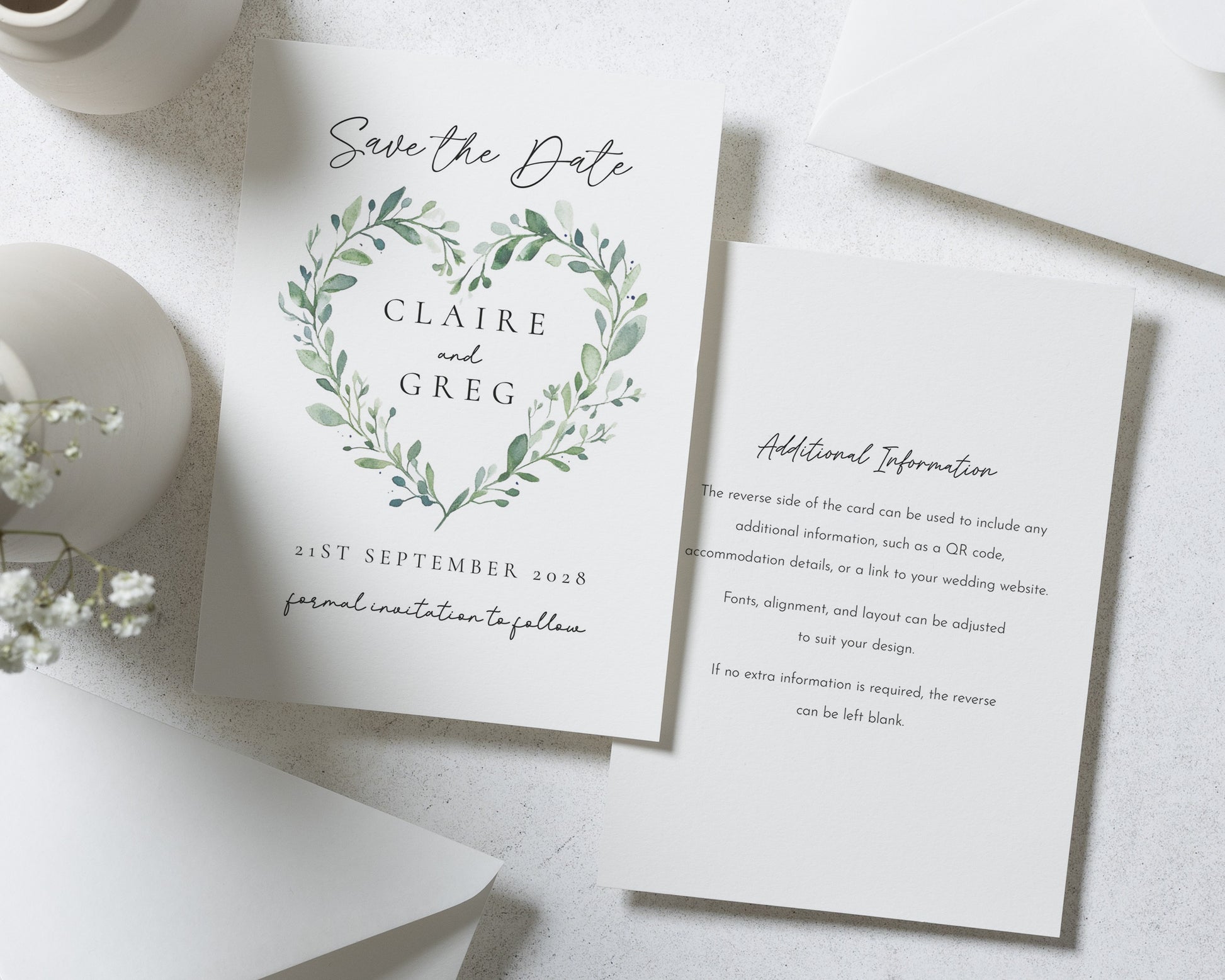 Personalised Save the Date Card, Wedding Save the Date Card, Greenery Save the Date, Custom Save the Date, Simple Save the Date Card