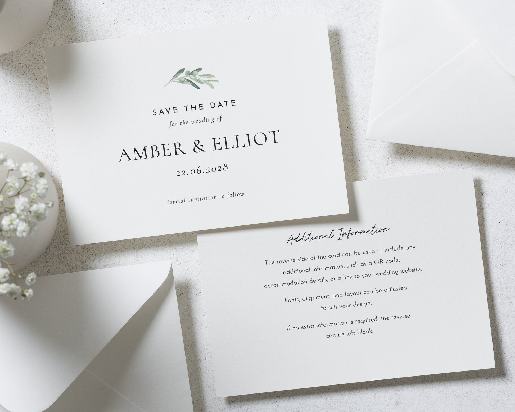 Personalised Save the Date Card, Wedding Save the Date Card, Minimal Save the Date, Custom Save the Date, Greenery Save the Date Card