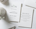 Announce your special day with this elegant, minimalist save the date card featuring delicate botanical artwork and custom initials for a modern touch.