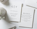 Announce your special day with this elegant, minimal save the date card featuring your initials and wedding details in a timeless, modern design.