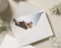 Both are supplied with premium heavyweight white envelopes featuring a diamond flap.