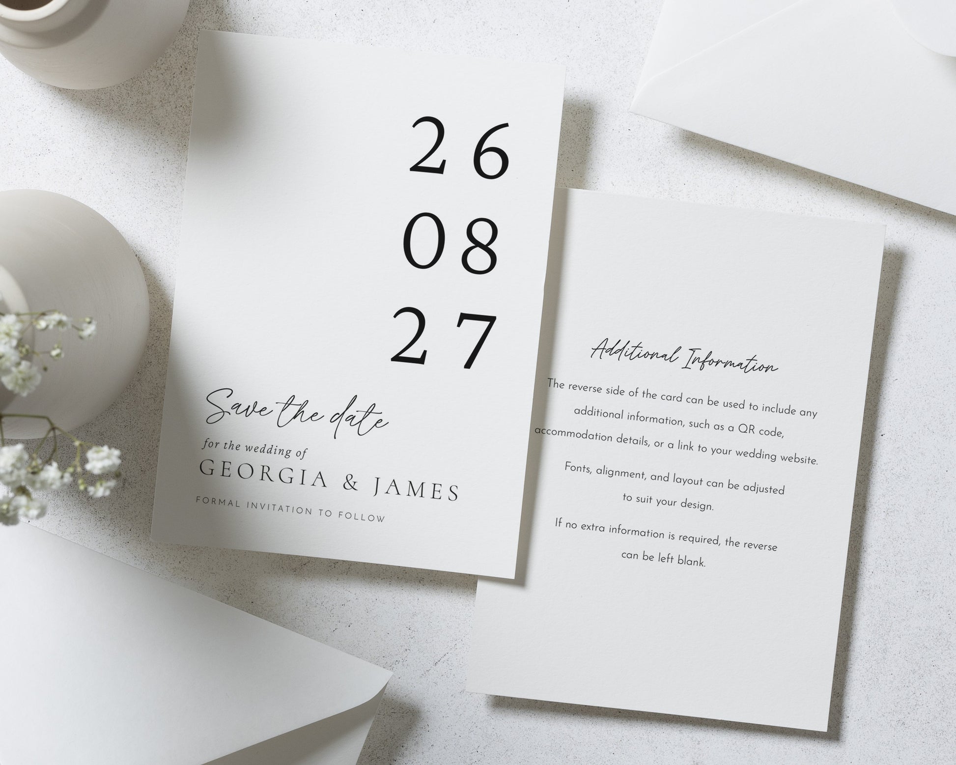 Announce your special day with this elegant, minimal save the date card featuring bold modern typography and personalised details for your wedding.