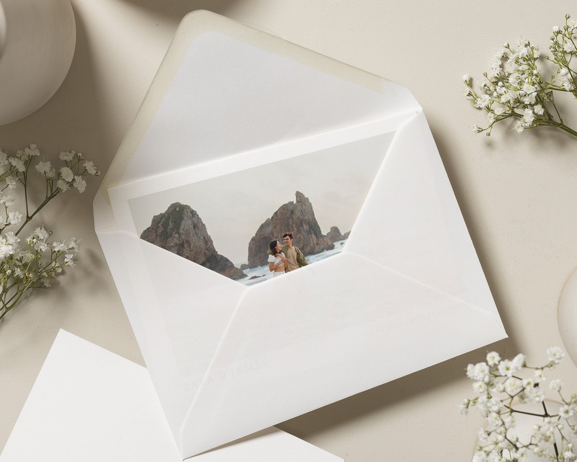 Our Save the Date cards are fully customisable – you can change all of the text to match your names, date, and wedding vibe. Whether you're planning a formal celebration or something more relaxed, we’ll help you create a design that feels uniquely you.