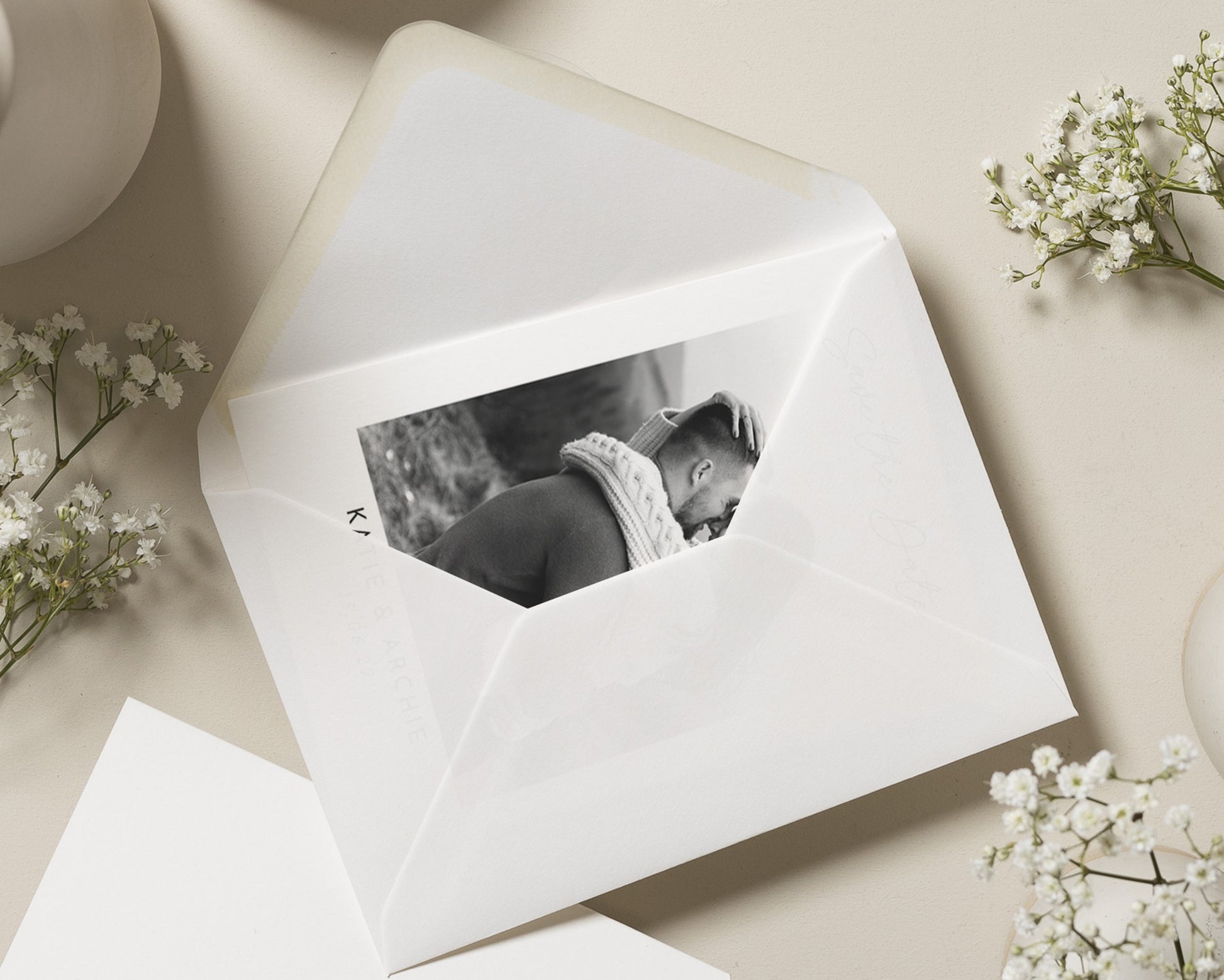 Our Save the Date cards are fully customisable – you can change all of the text to match your names, date, and wedding vibe. Whether you're planning a formal celebration or something more relaxed, we’ll help you create a design that feels uniquely you.