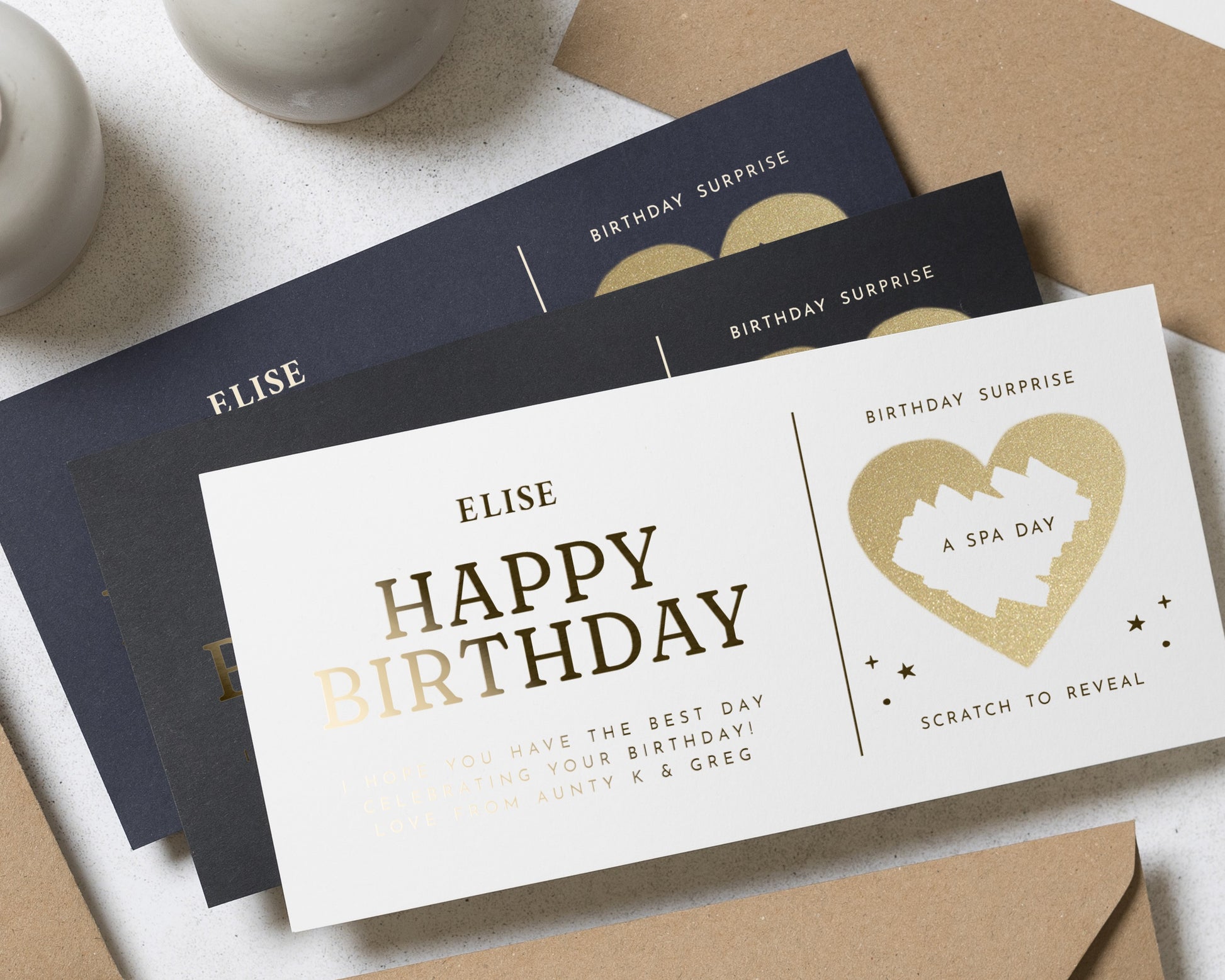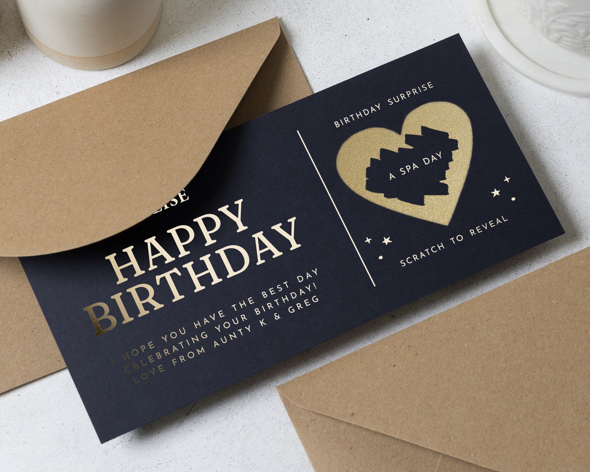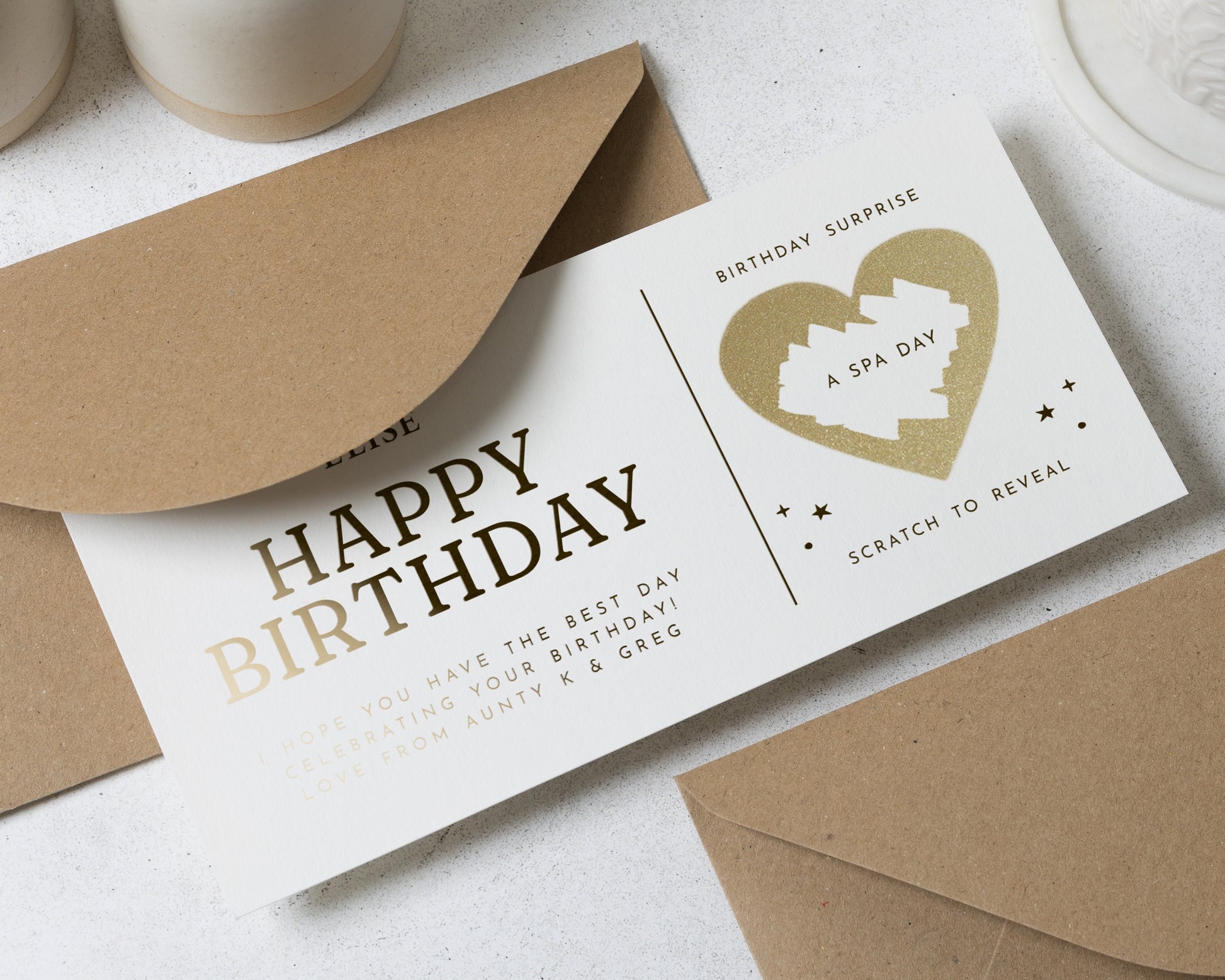 Personalised Spa Day Gift Voucher, Birthday Gift For Her, Scratch To Reveal, Gold Foil Birthday Surprise