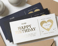 • Each voucher card measures 210x99mm, and is printed on heavyweight premium cardstock and finished with real gold foil detailing for a luxurious touch.