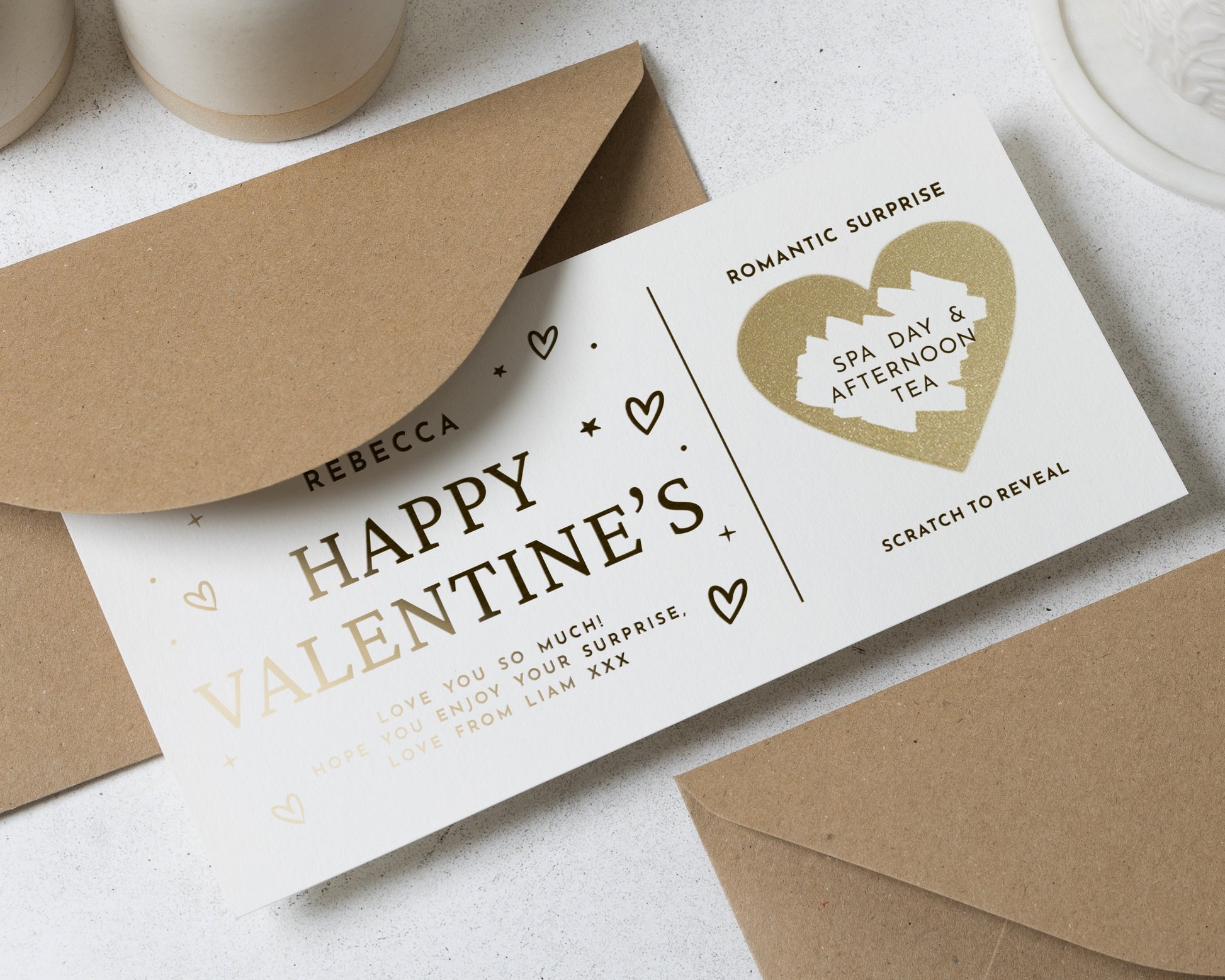 Personalised Spa Day Gift Voucher, Afternoon Tea Gift, Valentines Day Gift for Her, Romantic Gift Voucher, Gold Foil Gift