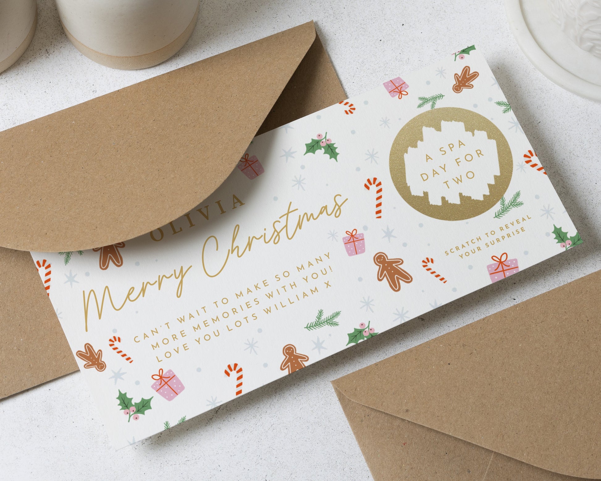 • Every voucher comes complete with a recycled Kraft envelope, ready to gift.