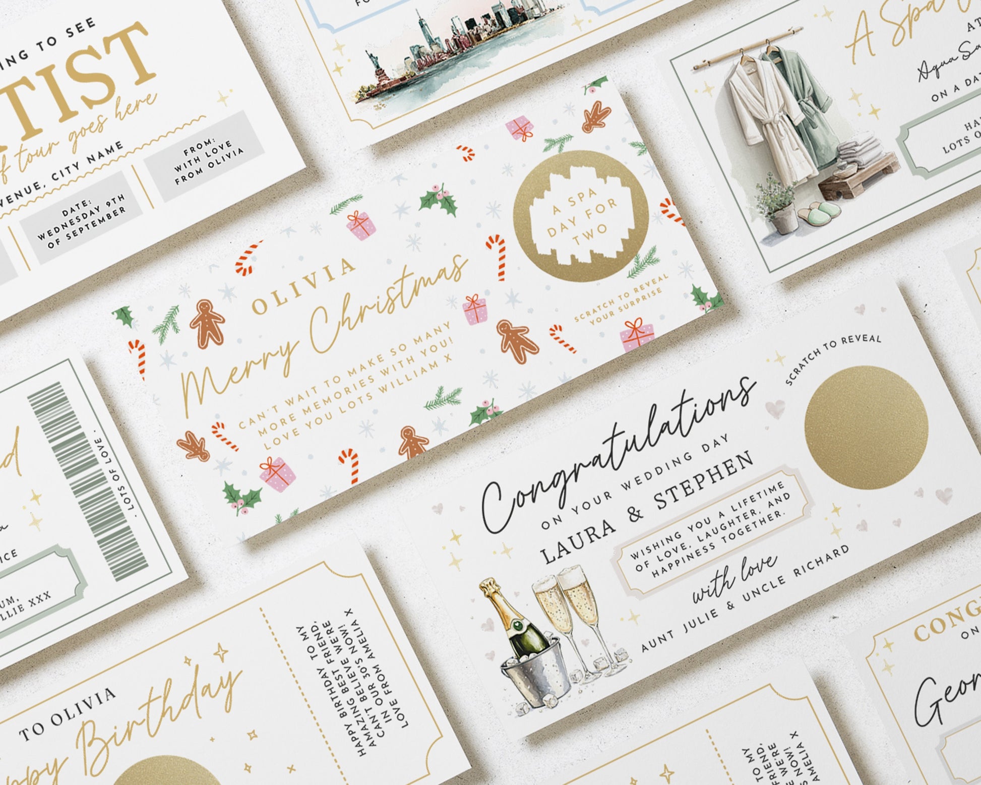 • Each voucher card measures 210x99mm, and is printed on heavyweight premium cardstock.