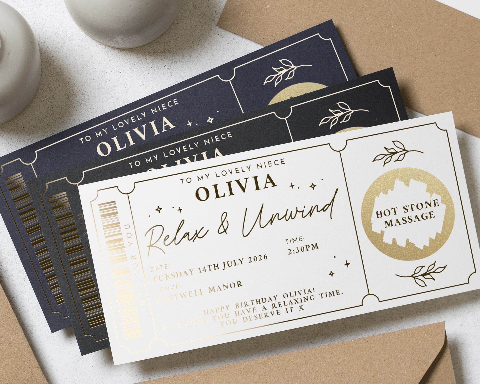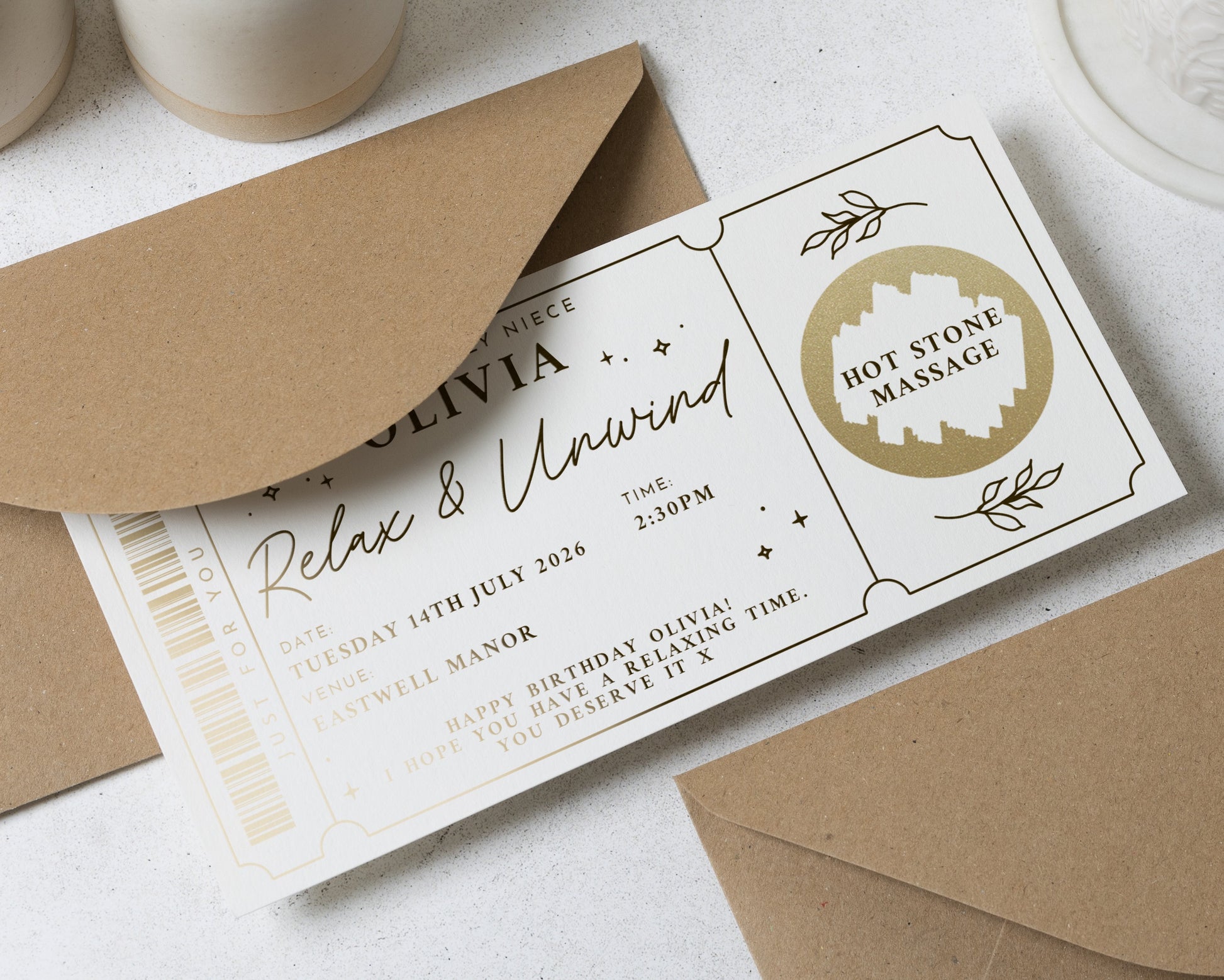 Personalised Spa Day Gift Voucher, Hot Stone Massage Gift, Relax And Unwind, Birthday Gift For Niece