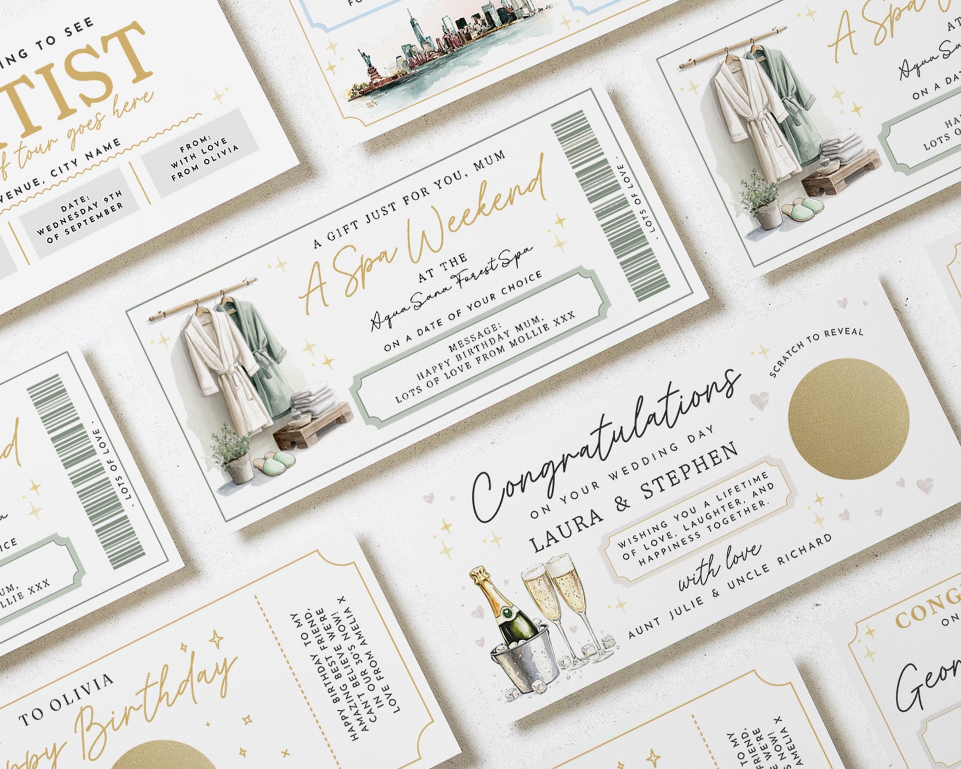 • Each voucher card measures 210x99mm, and is printed on heavyweight premium cardstock.